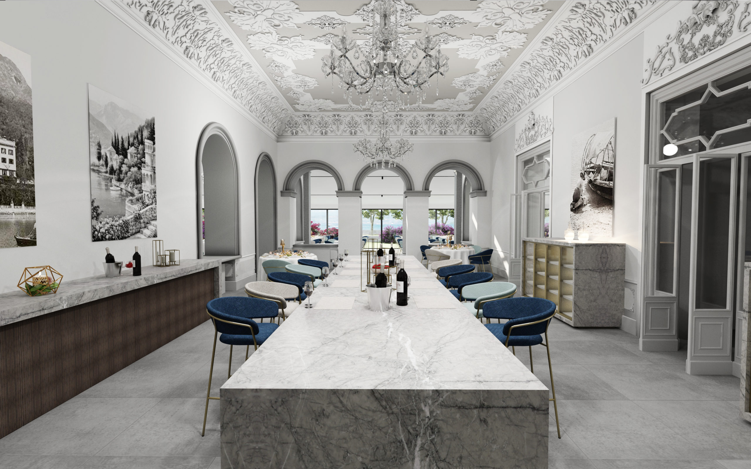 La nuova struttura avrà due bar, due ristoranti, 2mila metri quadri di Spa, 110 posti auto interrati, un molo privato per l’attracco di barche, oltre ad una piscina, a cui se ne aggiungerà un’altra galleggiante sul lago, nel 2021.