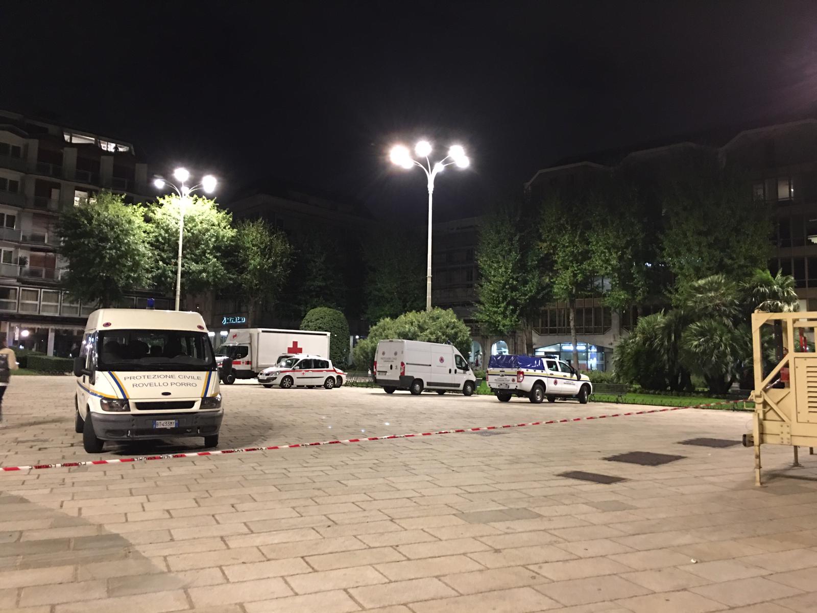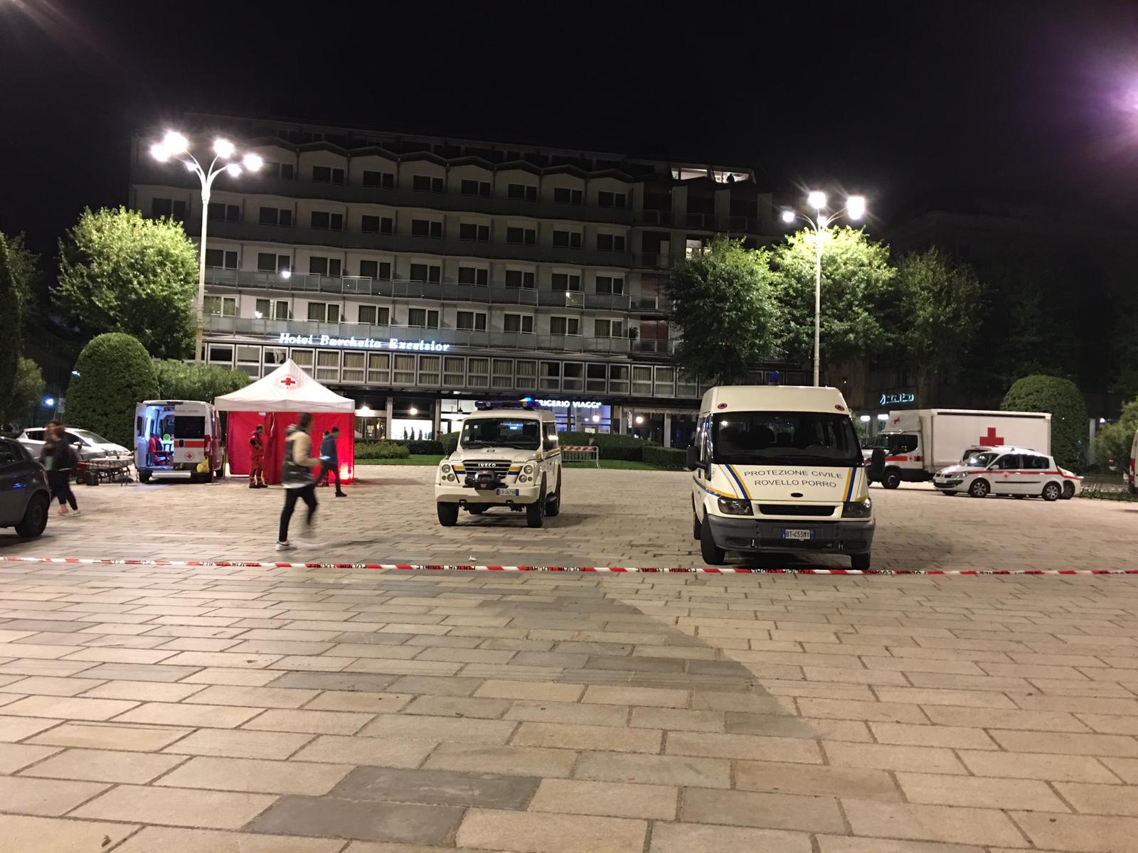 Donne e uomini della Protezione Civile e della Polizia Locale lavorano ininterrottamente da ore per garantire la sicurezza. In questi minuti il comparto di protezione civile della Croce Rossa ha allestito un gazebo in piazza per un presidio permanente fino a fine emergenza.