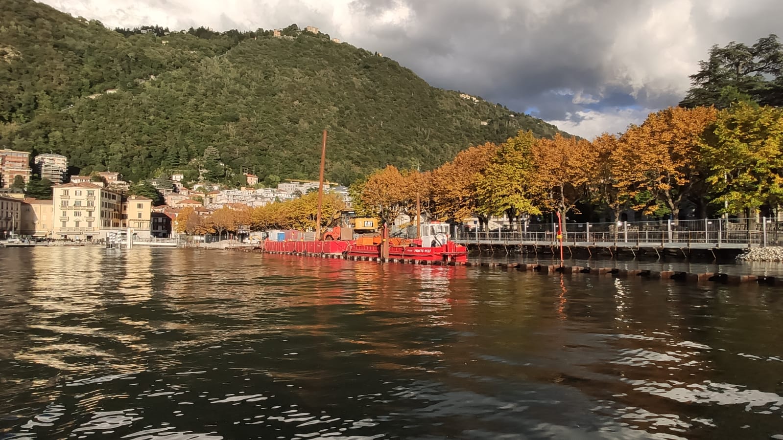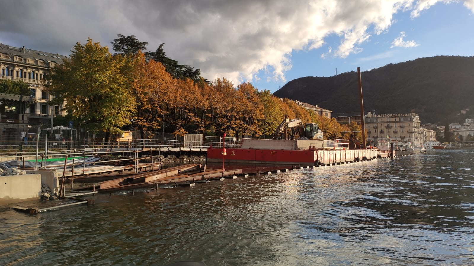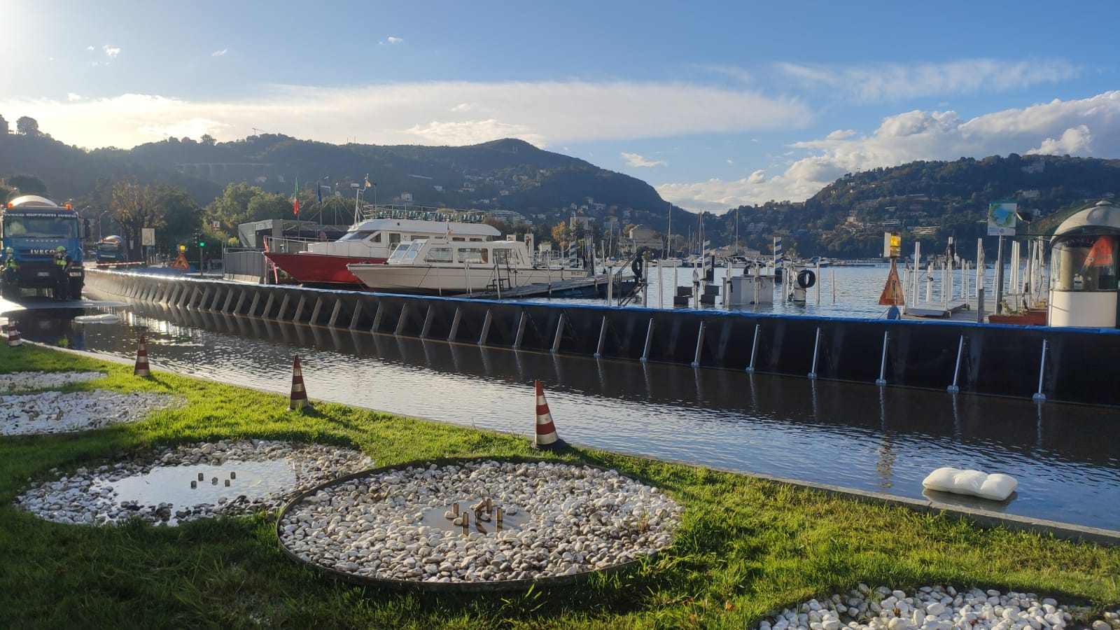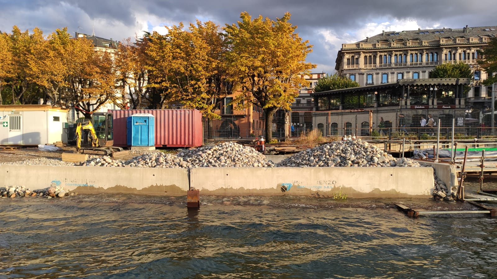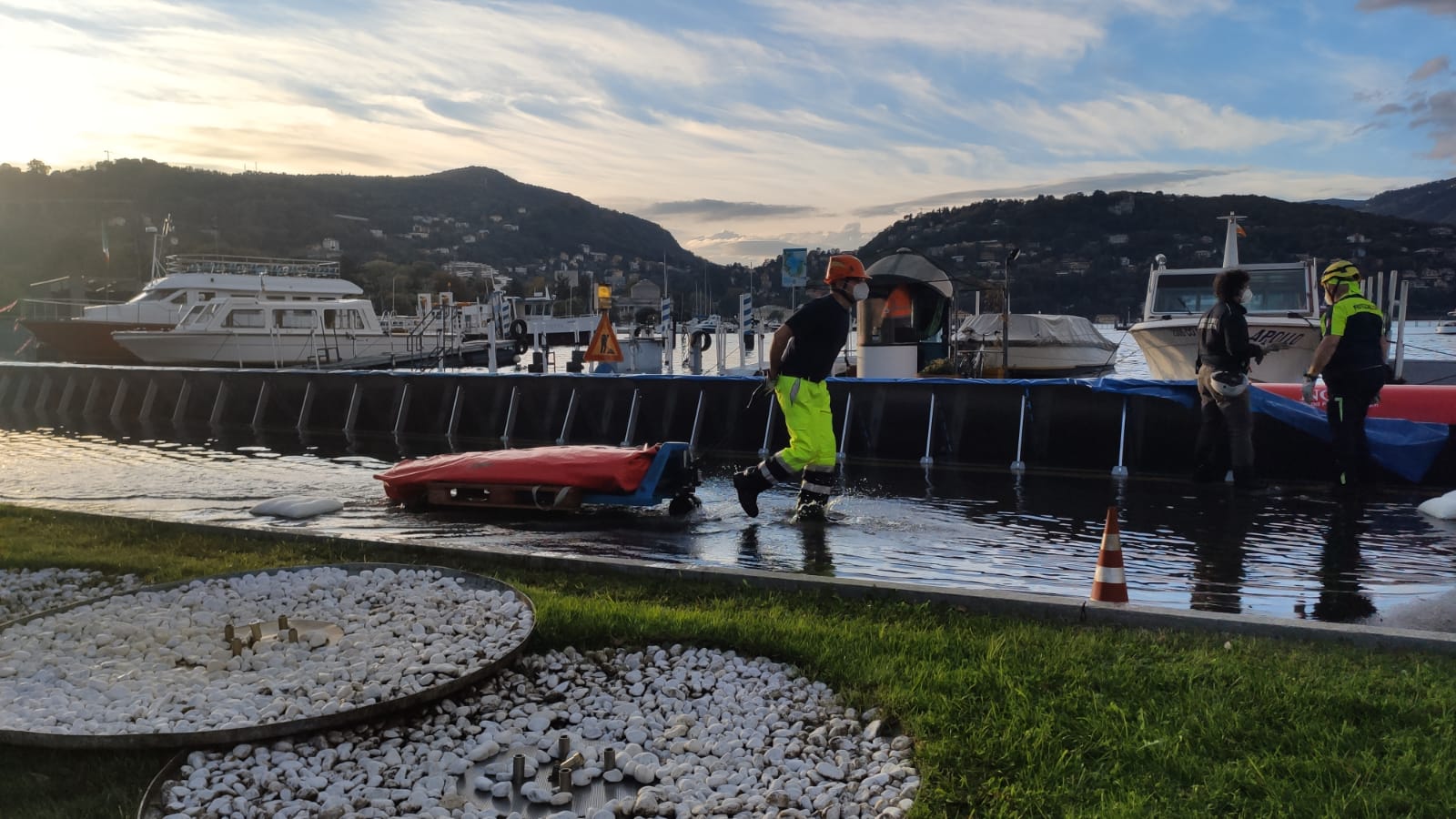 L’allestimento delle paratie mobili (necessarie per contenere i detriti che giungeranno con gli sversamenti di valli e valletti dell’altolago e della Valtellina) è quasi ultimato.