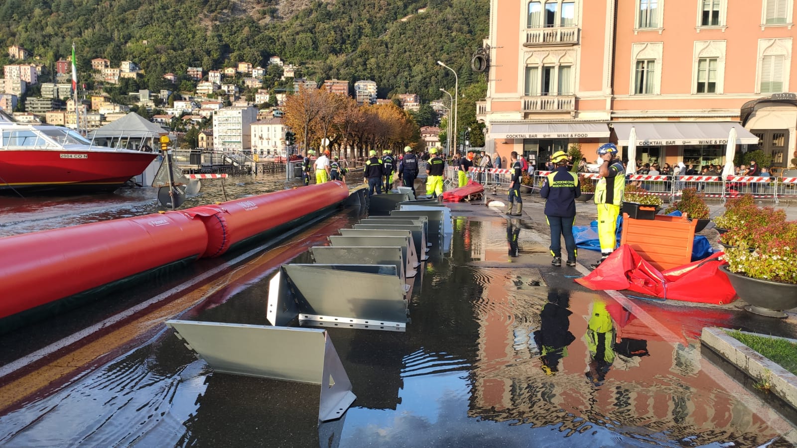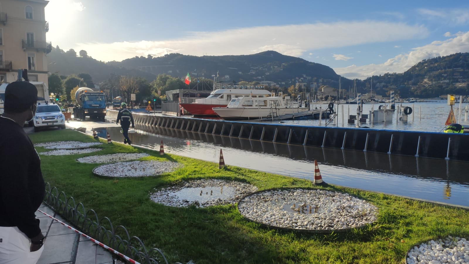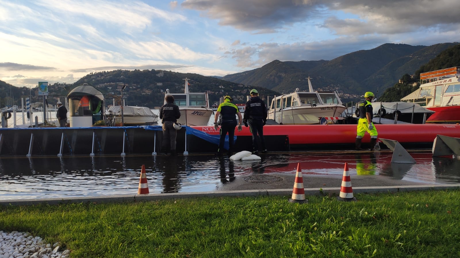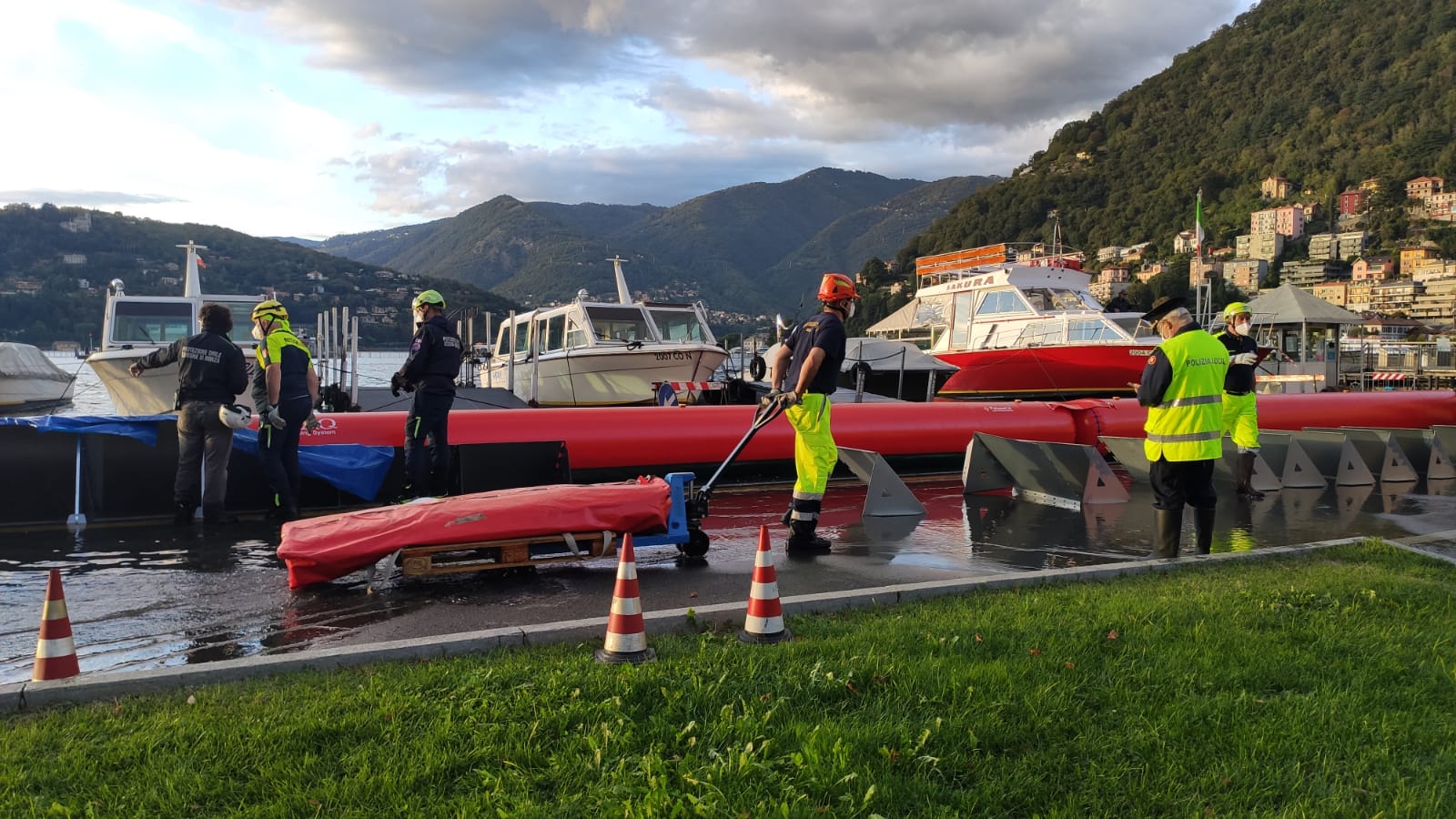 L’allestimento delle paratie mobili (necessarie per contenere i detriti che giungeranno con gli sversamenti di valli e valletti dell’altolago e della Valtellina) è quasi ultimato.