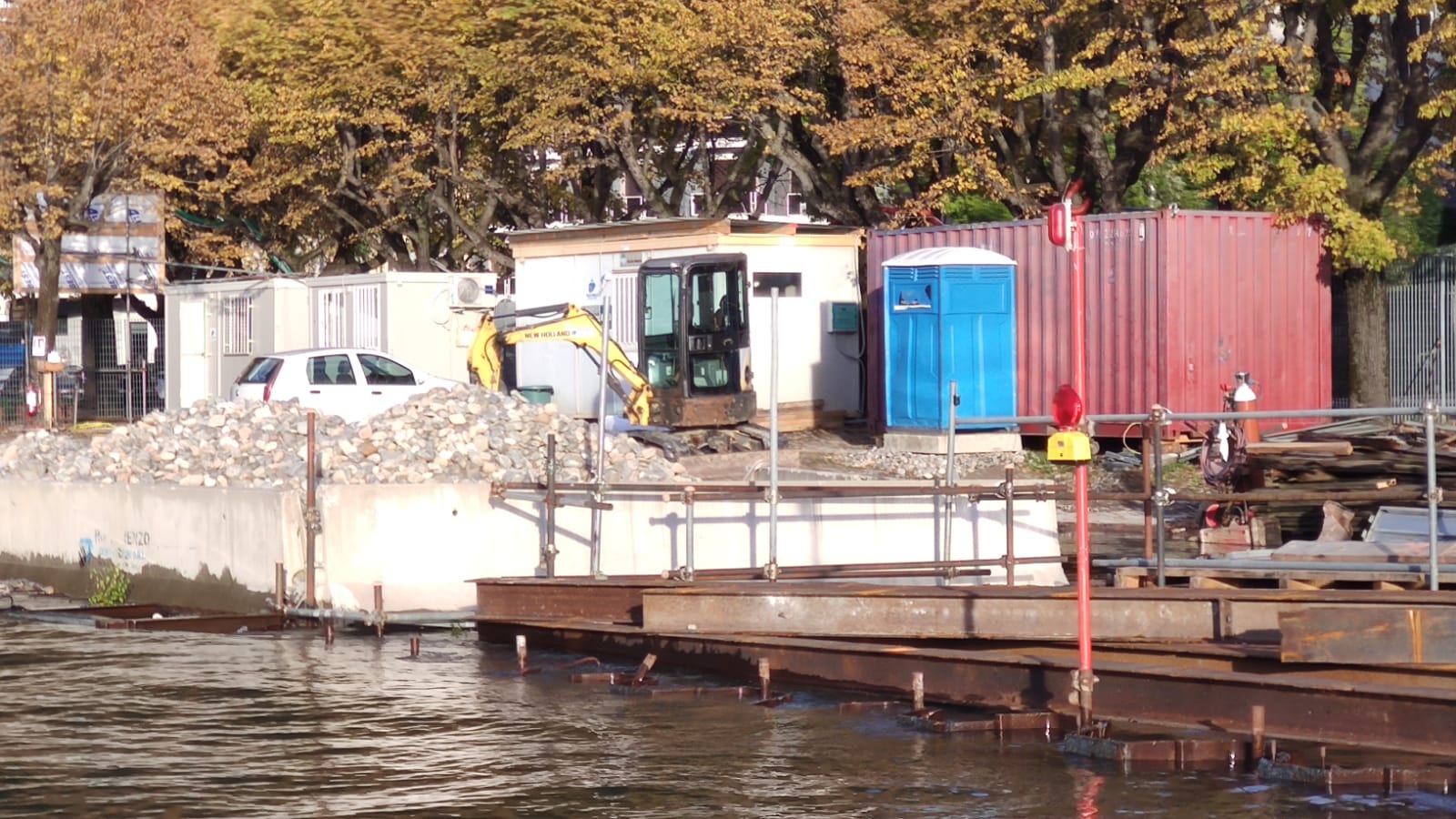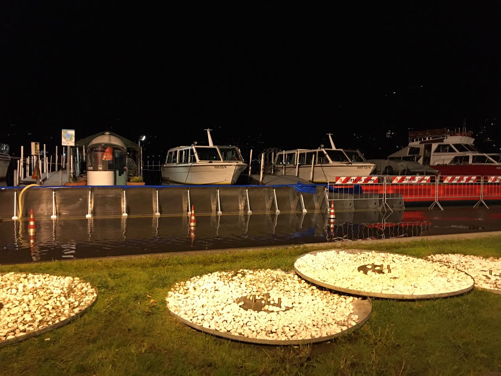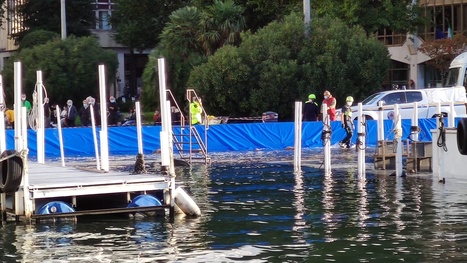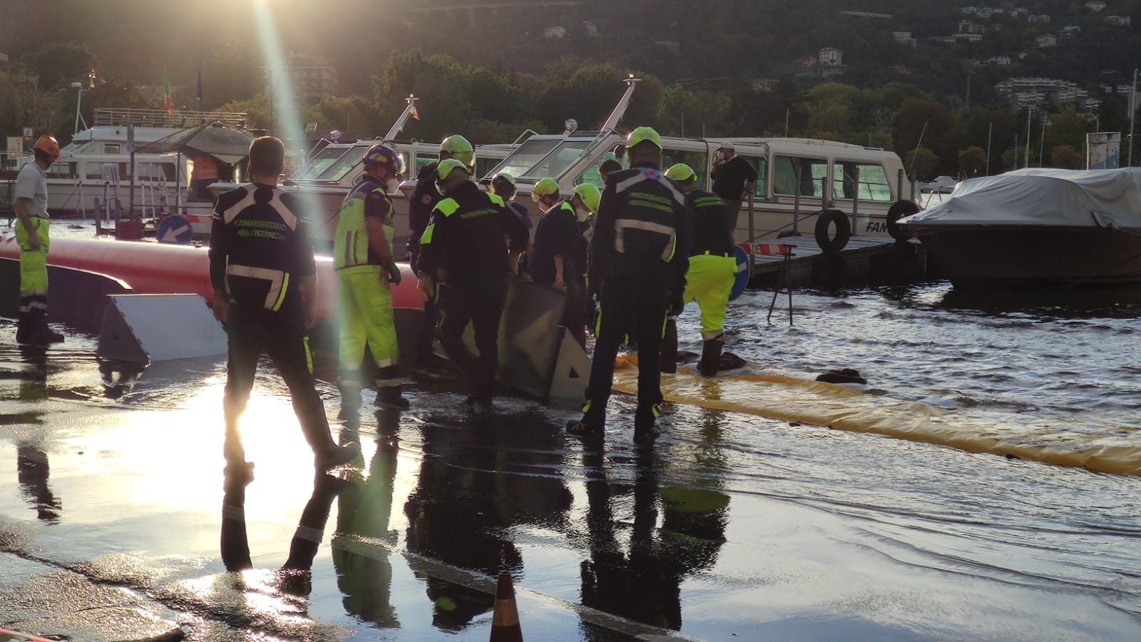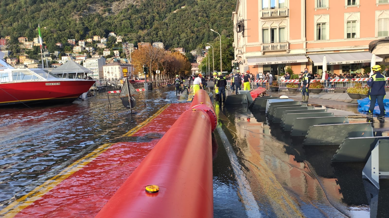 L’allestimento delle paratie mobili (necessarie per contenere i detriti che giungeranno con gli sversamenti di valli e valletti dell’altolago e della Valtellina) è quasi ultimato.
