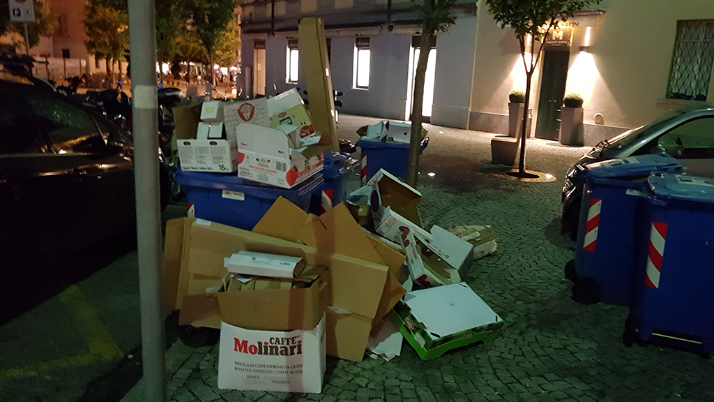 Dunque, il punto non è la denuncia di un disservizio o della sciatteria di qualche residente “ti ho scritto perché il punto è che – aggiunge, contattata via Whatsapp per qualche ragguaglio – le risorse e i mezzi sono finiti, non illimitati. Quindi il Comune può spostare orari di consegna, di deposito, di ritiro. Ma comunque avremo sempre spazzatura in giro, in qualche modo, a qualche ora“.