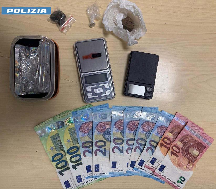 Portato in Questura, l’ispezione sulla sua persona ha permesso di trovargli addosso quasi 10 grammi e mezzo di hashish e alcuni semi di marijuana, più denaro contante pari a 340 euro.