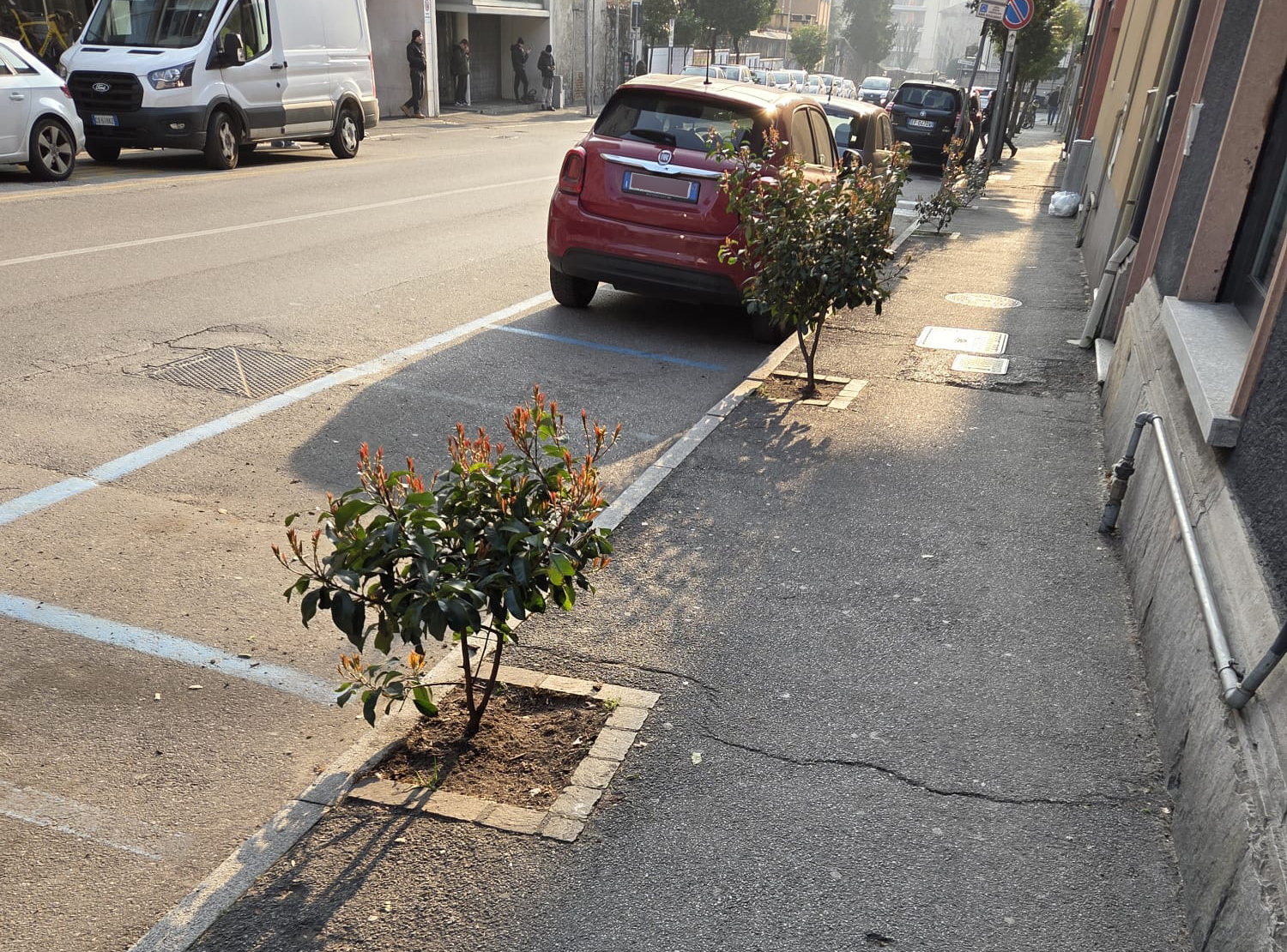E se, come scrivevamo ieri, quegli alberelli-arbusti tutto paiono tranne futuri fusti simili a quelli che si vedono lungo la parte successiva del marciapiede, ecco che alcuni residenti della zona hanno contattato la redazione in queste ore. E’ successo dopo la pubblicazione del primo articolo.