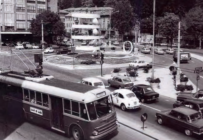 Cosa che non era in passato. E così ecco che affiorano i ricordi e le testimonianze di un tempo come quando nel 1960 iniziarono i lavori per montare la “fontana in mezzo alla piazza, trasferita fino a qui dal parco Sempione di Milano. Due giovani architetti (i signori Cesare Cattaneo e Mario Radice) erano stati incaricati di progettare una fontana che servisse come spartitraffico per il piazzale Corsica, così si chiamava la piazza che era anche l’unico raccordo per il centro città, per Varese, per Milano e per Cantù”.