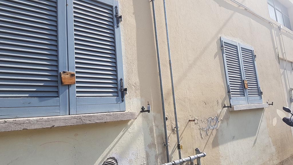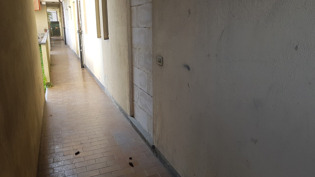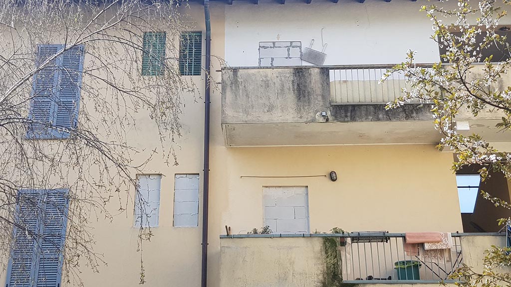 Sono 18 gli alloggi pubblici in pancia alla stecca, che accenna qualche movimento con brio – lento, macchinoso – soltanto sul retro, tra balconi malinconici, anfratti bui, corridoi angusti. Otto appartamenti – praticamente la metà – sono murati. “Sennò ci entravano gli abusivi”. La politica del mattone in senso pieno, insomma.