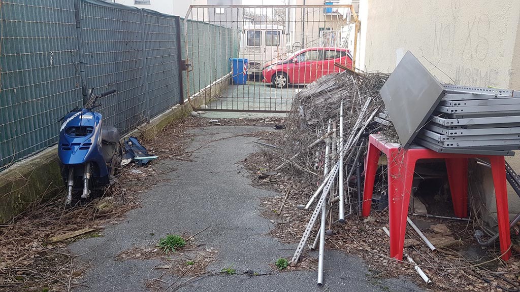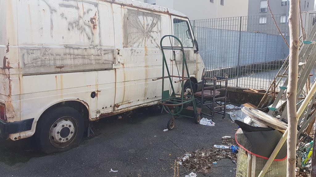 Puoi descrivere il verde selvaggio che “se non ci pensiamo noi, la foresta ci mangia”. Puoi parlare dei vetri rotti alle porte d’accesso alle palazzine, a quelli infranti sulle scale, puoi far vedere i rottami nel giardino, il motorino fatto a pezzi dagli zombie in un anfratto o il furgone di ruggine dall’altro lato del cortile. Infatti, nelle 3 gallery, quel minimo sindacale lo abbiamo fatto. Ma ci sarebbe ancora da descrivere il citofono che va se lo decide lui, il cancello che si chiude se lo decide lui, il divano sudicio che troneggia tra le aiuole interne. Ci sarebbero molte cose da fare, senza un verdetto già pronunciato.