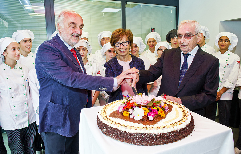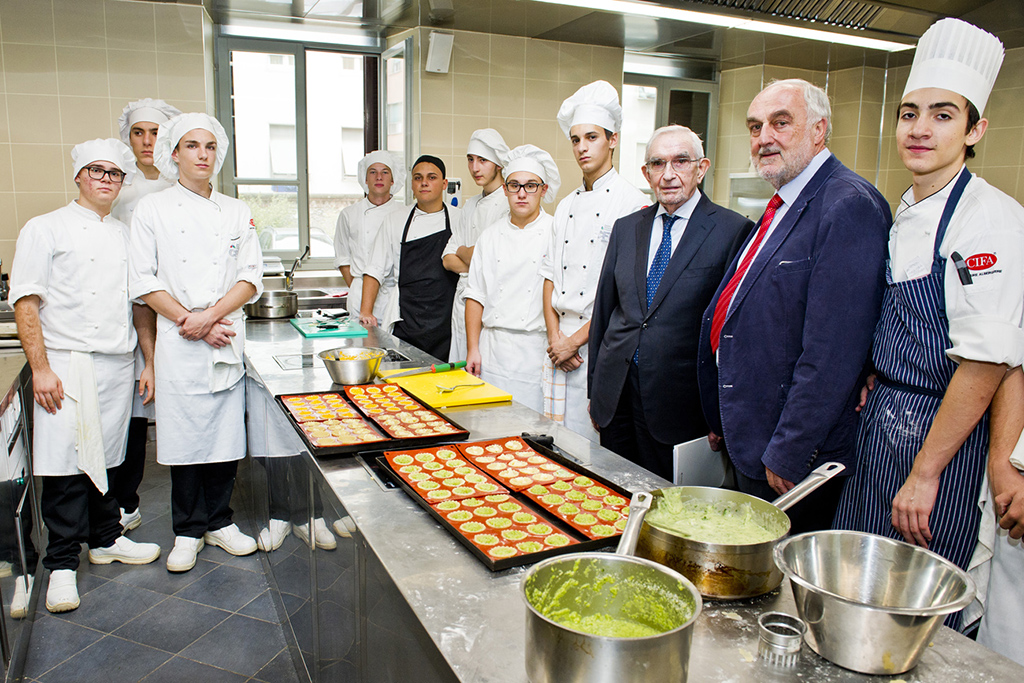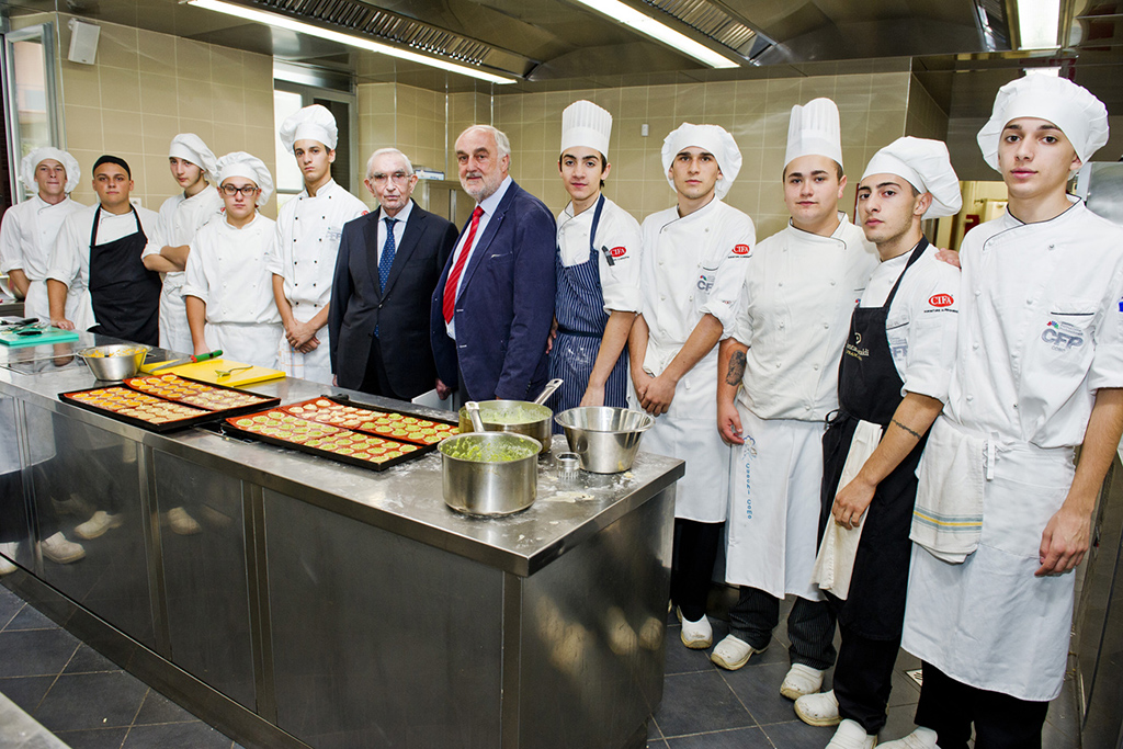 Como scuola CFP Centro Formazione Professionale alunni in cucina con il Presidente della Fondazione Cariplo Giuseppe Guzzetti e e l’ex direttore Silvio Peverelli