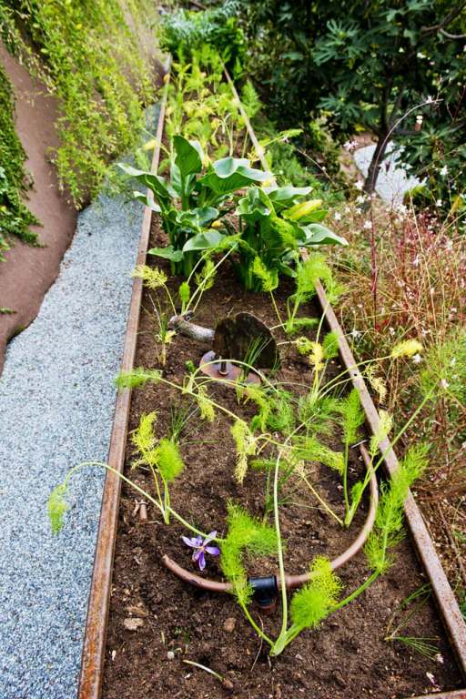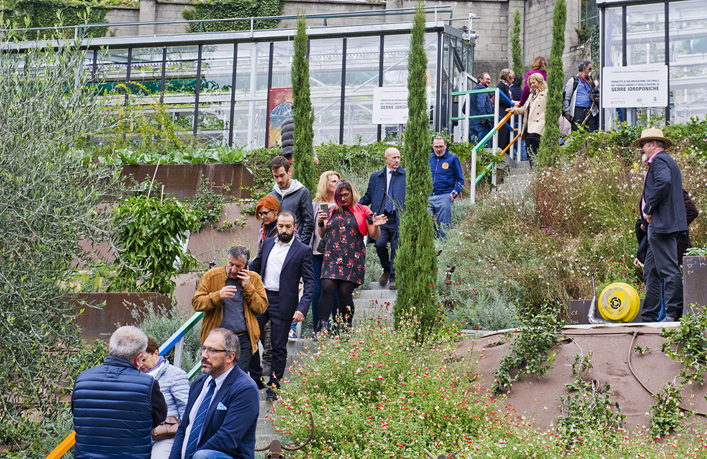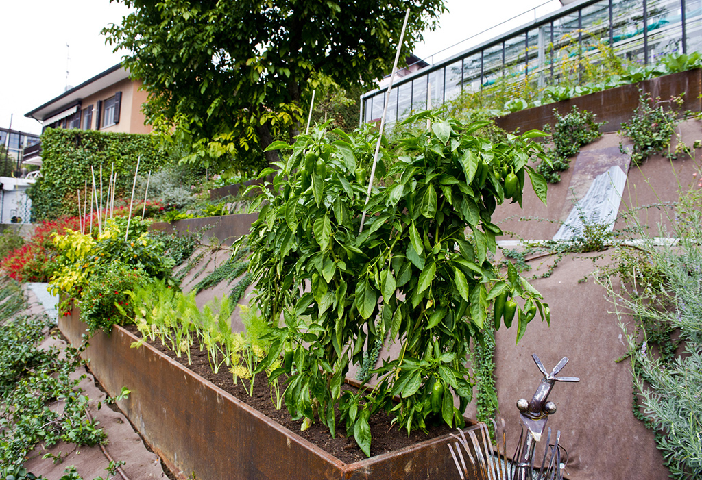 Oltre alle serre, la produzione di ortaggi, erbe aromatiche in diverse varietà e fiori eduli si realizza nei diversi terrazzamenti attrezzati di vasche di coltivazione, utili a livello didattico e paesaggistico.