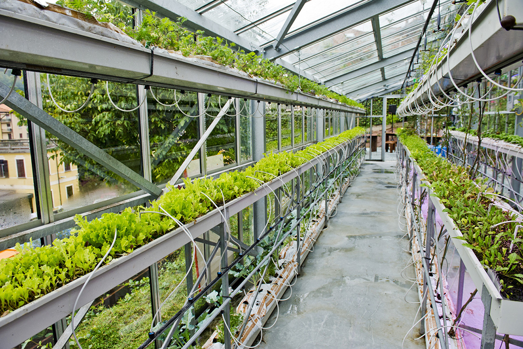 Nelle serre idroponiche le piante vengono irrigate con una soluzione di acqua e di composti che apportano gli elementi nutritivi. Il mantenimento climatico e le operazioni agronomiche sono gestiti tramite sensori e software che tengono in considerazione la situazione ambientale e climatica all’interno e all’esterno della serra. Questa tipologia di coltivazione permette di avere una disponibilità di prodotti in tutto il periodo scolastico. Gli studenti assistono al processo di crescita dei prodotti e , con i formatori, scelgono i prodotti per i loro ricettari di cucina.