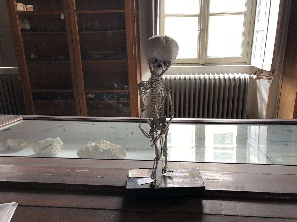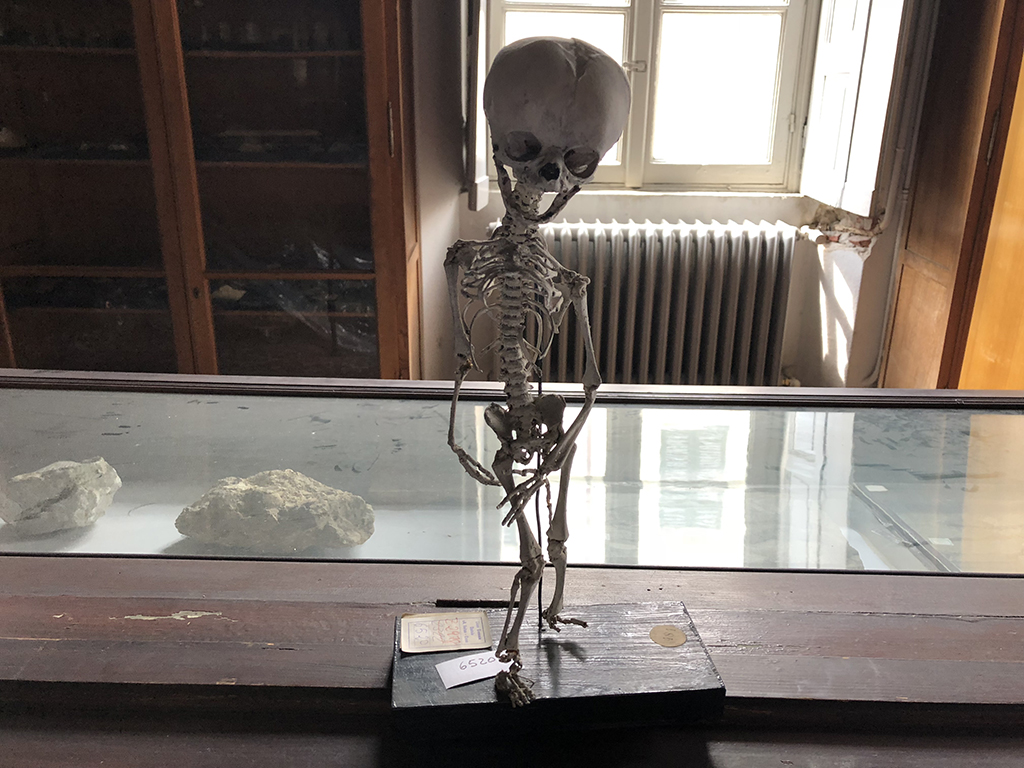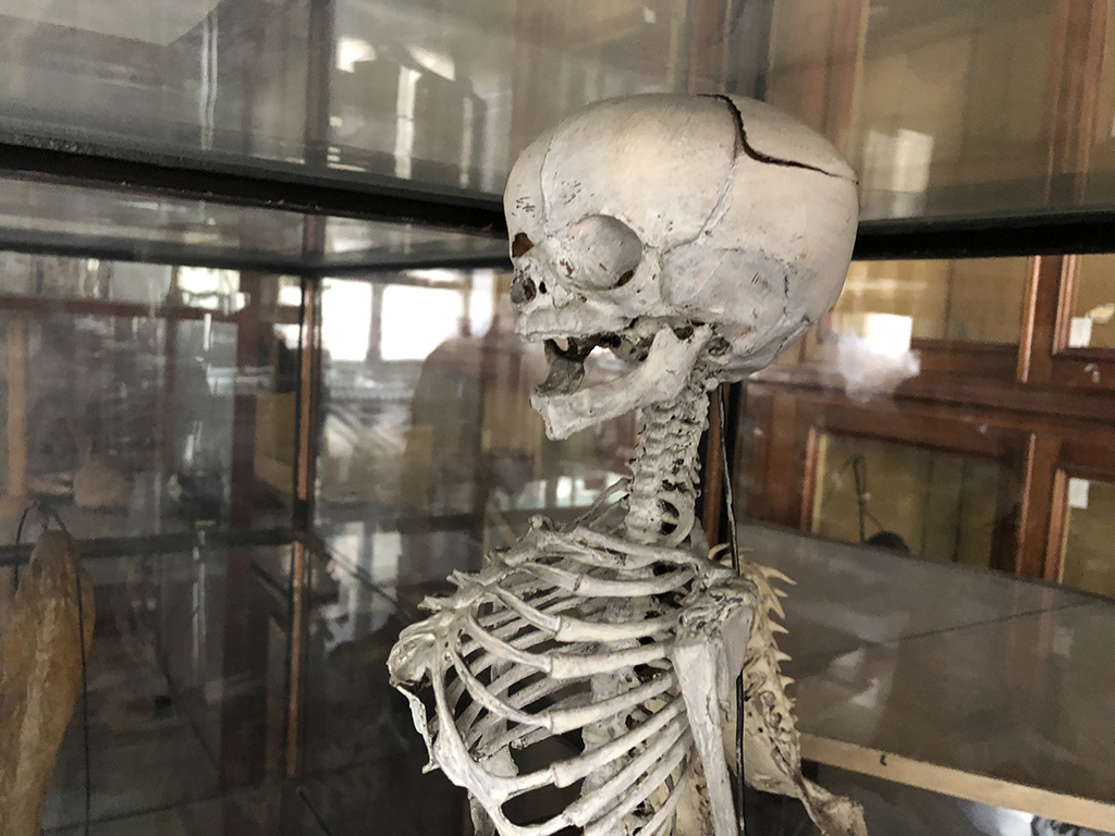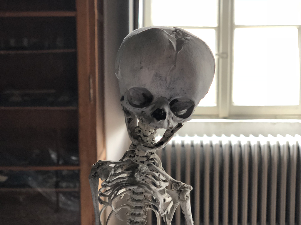 E, sì, ci sono gli scheletri. Quello grande (storia vuole sia uno studente dei decenni bui, dove la disciplina ferrea era tutt’altro che uno scherzo e le regole ortodosse arrivavano a vietare il bagno nel lago agli studenti, questione di decoro). Eccolo, Mortimer: