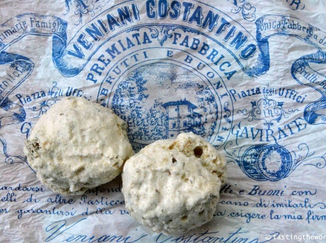 La storia di questa prelibatezza riporta a Costantino Veniani, un giovane 24enne che, nel lontano 1875, decise di aprire un proprio locale nel centro di Gavirate con il sogno di trasformare quei curiosi biscotti tondi e irregolari, che all’epoca risultavano “piuttosto secchi, duri e un po’ ostili”, nel suo prodotto identitario.