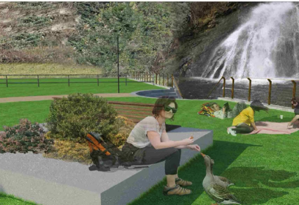 Il progetto consiste in primis nella demolizione completa e nella bonifica dei materiali di cemento-amianto del fabbricato che da troppi anni nasconde parzialmente la vista e impedisce di avvicinarsi ai piedi della cascata. L’area sarà recintata e separata dalla strada, mentre un elegante ingresso con i simboli di Asso e della Vallassina accoglierà i visitatori.