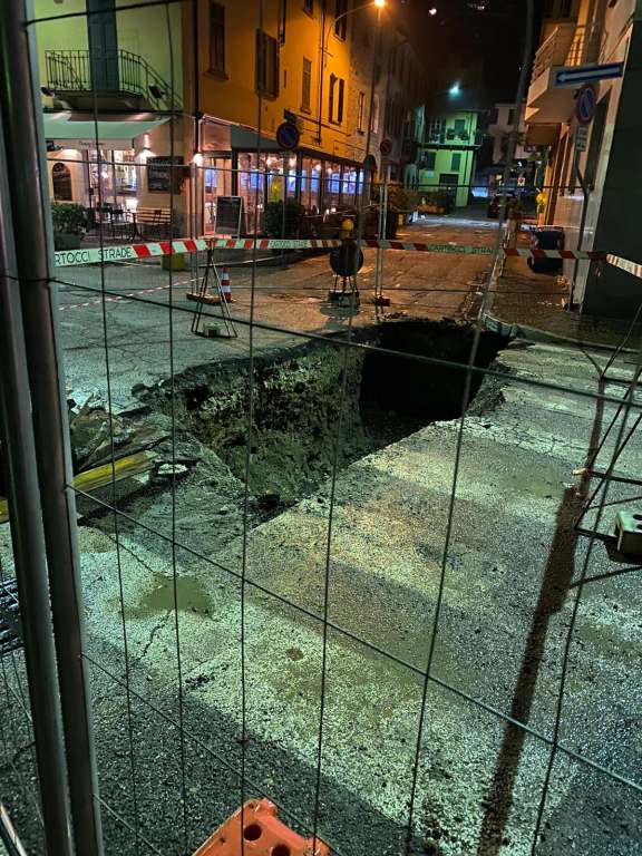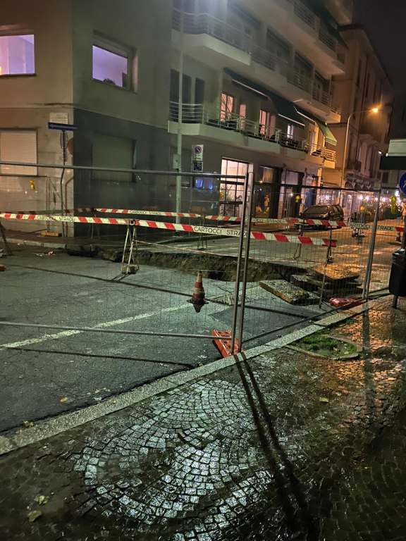 Il piccolo buco è andato ampliandosi progressivamente richiamando l’immediato intervento degli addetti Comunali che, testando la strada, ne hanno appurato debolezza e criticità.