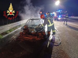 Intervento di soccorso tecnico urgente questa notte alle 00.40 a Lomazzo sulla A9 in direzione nord poco prima dell’area di servizio per l’incendio di una vettura.