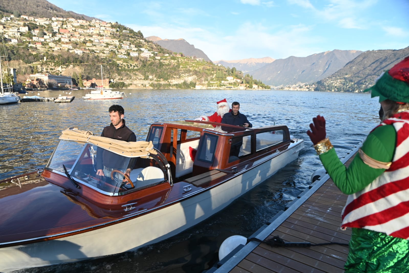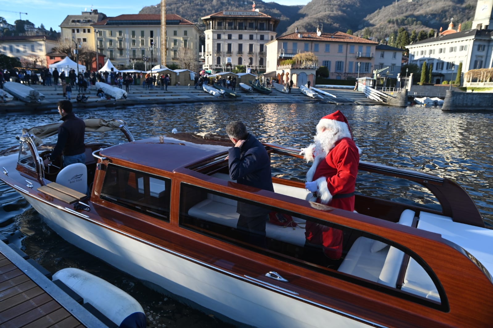 Un Babbo natale arrivato dal lago oggi, tra i moltissimi eventi ha animato la Città dei Balocchi in corso a Cernobbio. Elfi, sorrisi, festa e la gioia dei bambini per tutta la giornata.