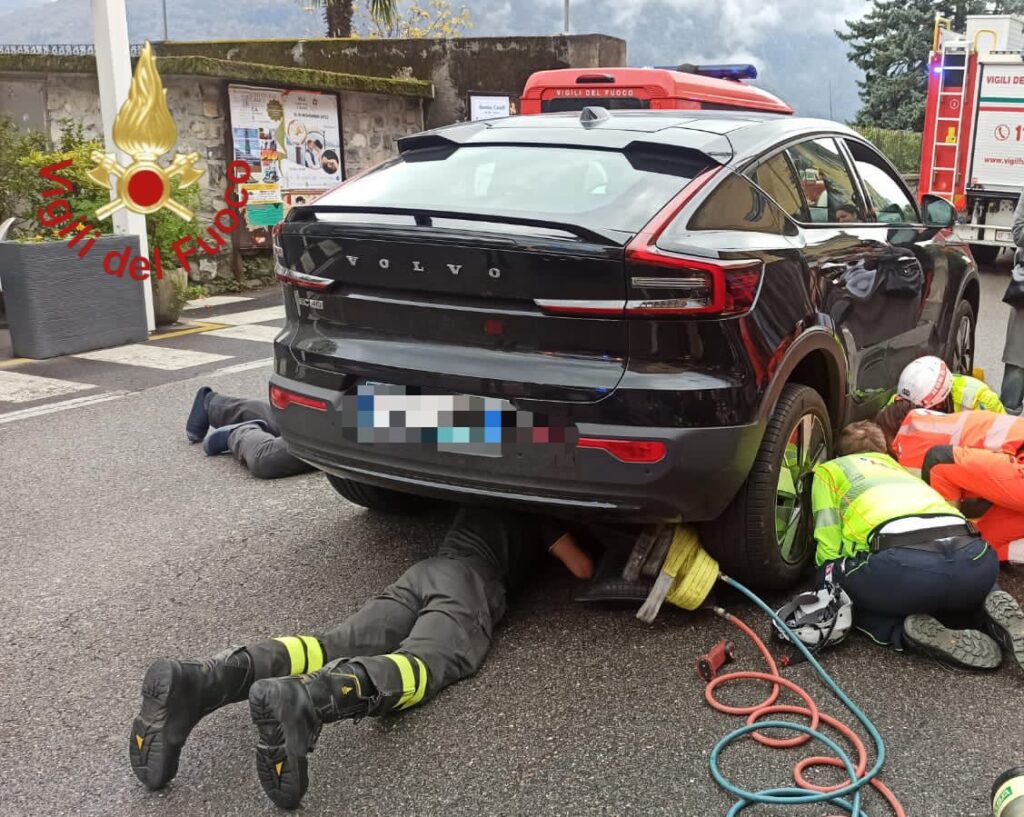 Il bambino di 7 anni è stato investito da una vettura in transito rimanendo bloccato sotto il veicolo.