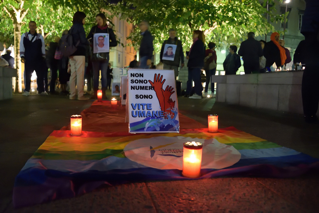 Tra provocazione grafica e commemorazione, Como Senza Frontiere – l’organizzazione di volontariato, tra l’altro, attiva nell’accoglienza e nell’assistenza dei migranti – ieri sera (3 ottobre) ha dato vita a un’iniziativa molto particolare. Circa 150 persone hanno commemorato i migranti morti nel tragico naufragio di un’imbarcazione del 3 ottobre 2013 al largo di Lampedusa, incidente nel quale morirono 368 persone.