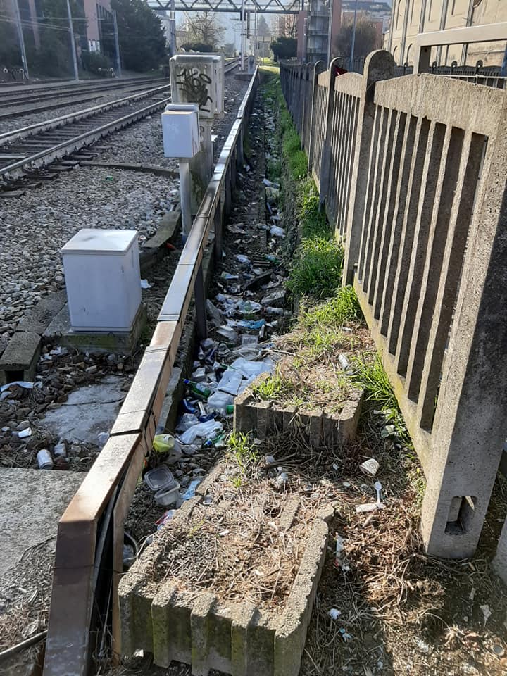 “Stazione di Como Borghi, ovvero discarica – denuncia facendo riferimento alle centinaia di bottiglie, lattine e rifiuti di qualsiasi genere che si vedono nel passaggio pedonale tra la stazione e il parcheggio -qualcuno potrebbe far notare che trovandosi l’immondizia all’interno della barriera di TreNord, la pulizia non compete al Comune di Como. Su questo punto attendo riscontro. Quello che succede però nel vialetto e nella zona circostante gli compete eccome. Questo degrado aberrante frutto di attività di qualsiasi genere non vi compete?”.
