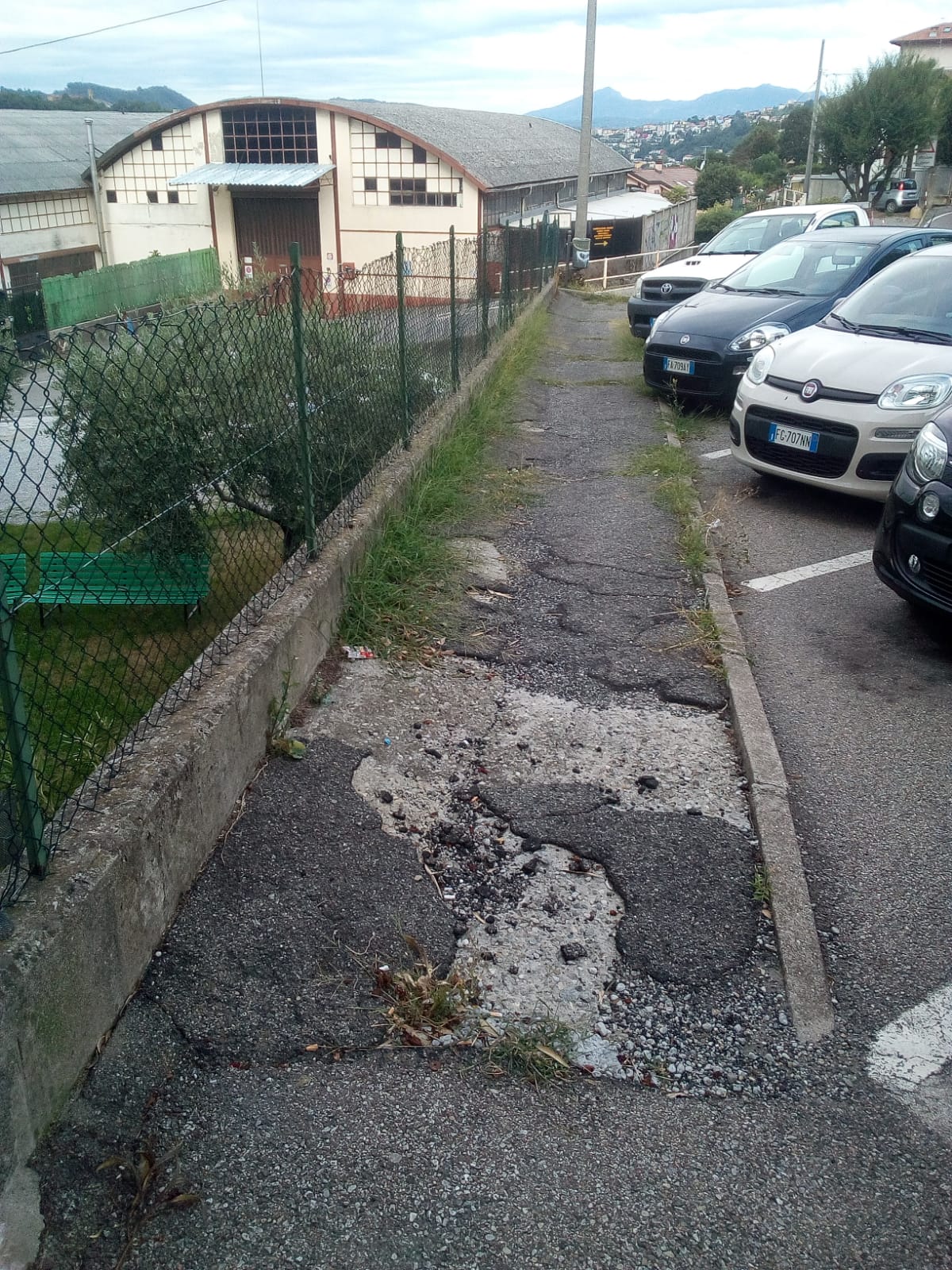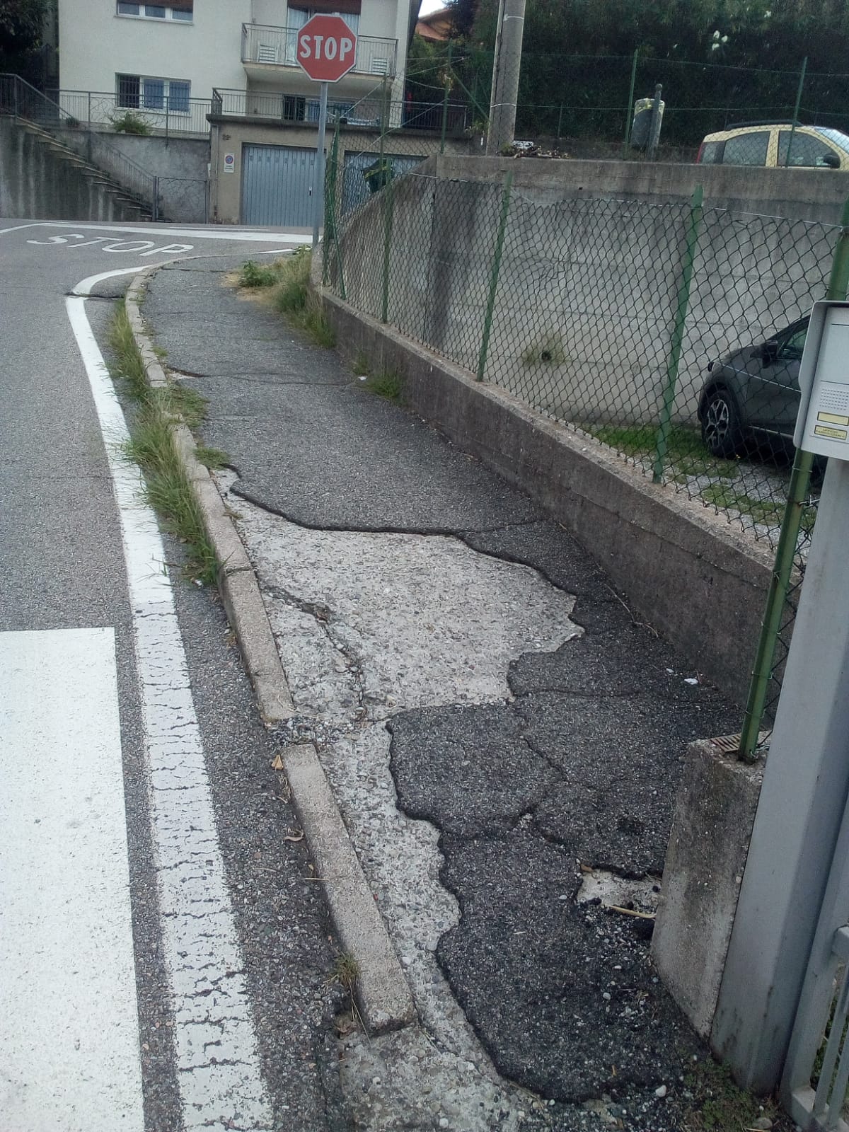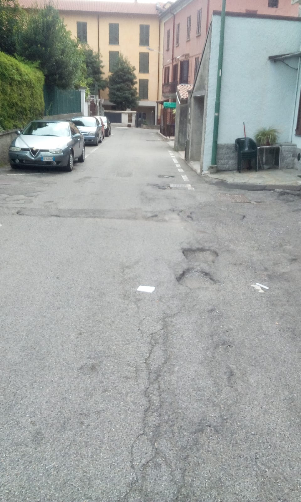Si comincia da via Marconi, come potete vedere dalla gallery qui in basso, che appare segnata da buche e fratture nel manto stradale.