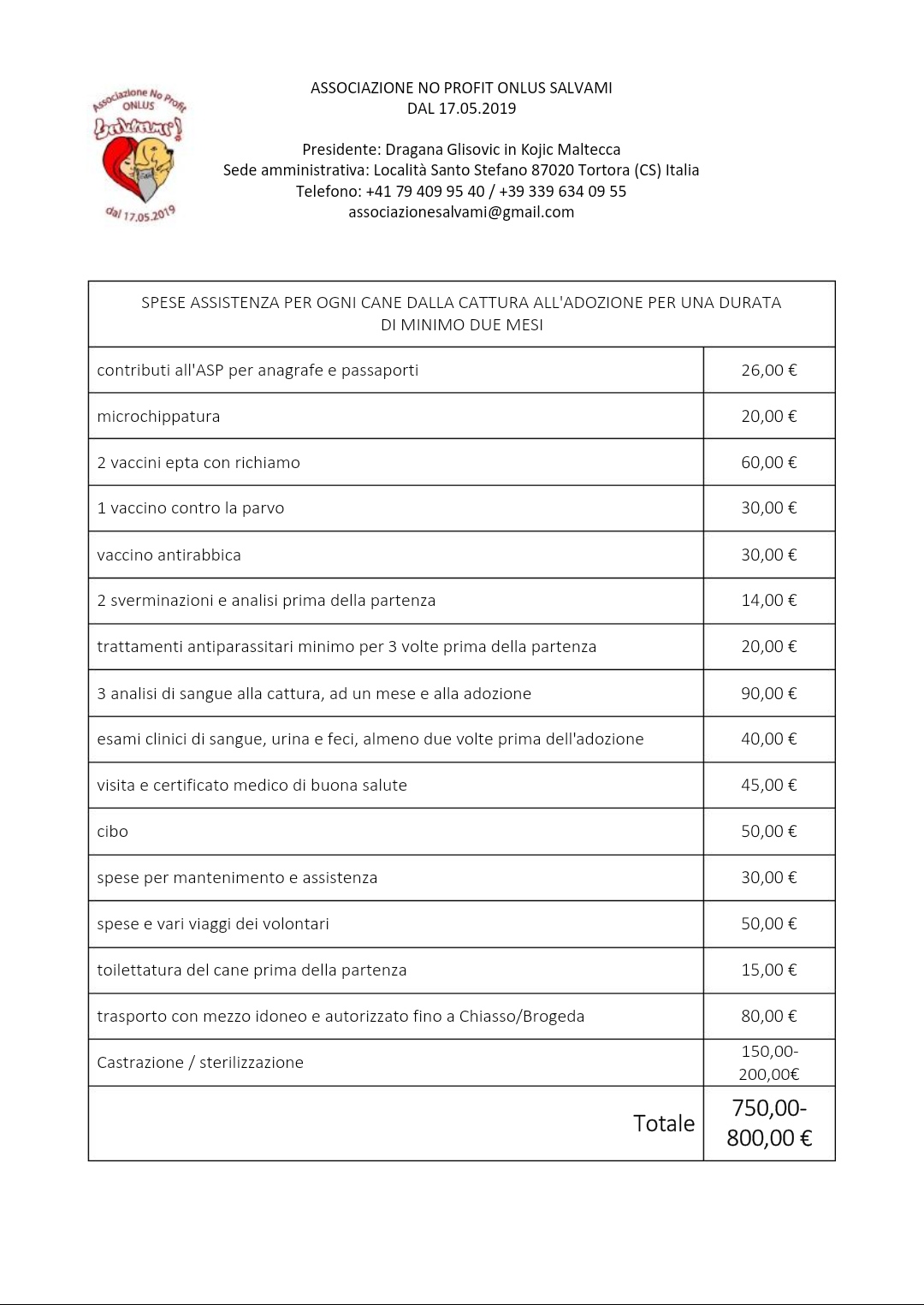 E i 600 euro fissi sborsati da ciascun adottante tra romborsi e donazione? “Nessuna truffa e nessuna compravendita di cani mascherata da onlus – chiarisce la presidente – è tutto alla luce del sole e dimostrabile carte alla mano”. E a dimostrazione di quanto affermato, l’associazione ci ha inviato un documento in cui vengono riportate spese sanitarie e di mantenimento di 750-800 euro.