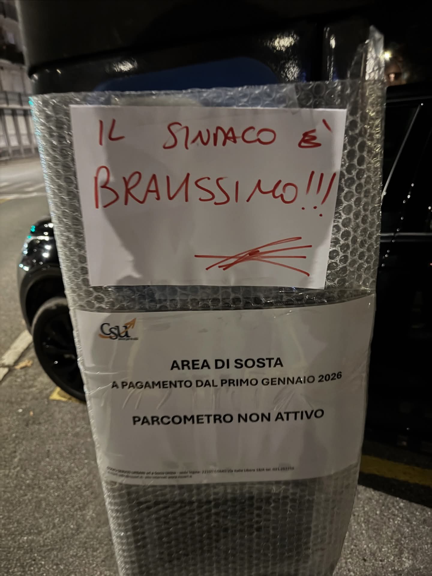 Ad ogni modo, postando il foglio con la scritta ‘il sindaco e è bravissimo’, con appena più sotto una specie di firma incomprensibile, il sindaco ha commentato via social: “In via Recchi finalmente un cartello su un parcometro in mio favore”.