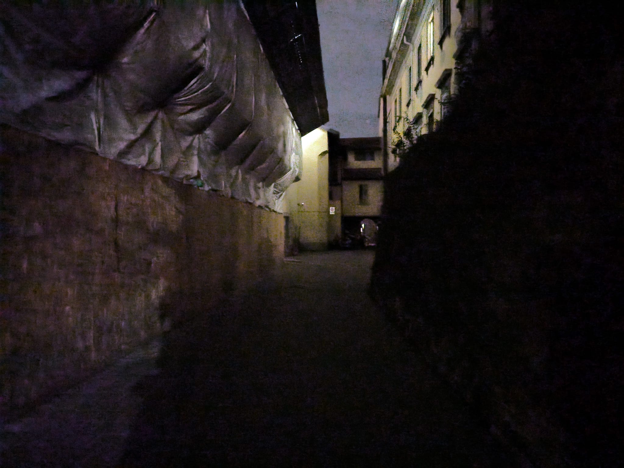 Molte le persone che per camminare si sono aiutate con la luce dello smartphone, qui il Passaggio dei giardini di Ponente Zuccoli: