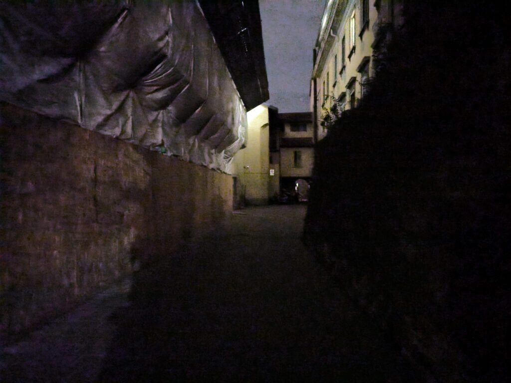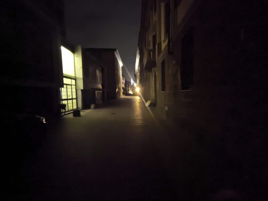 Qui l’incrocio con via Indipendenza (ancora con effetto notte):