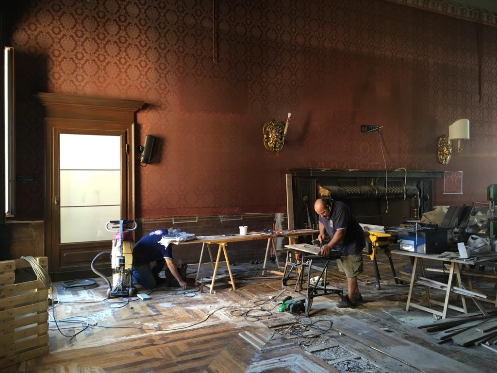 In una riunione operativa a Palazzo, il 13 agosto, è stato fatto il punto della situazione: il cantiere dovrebbe essere concluso tra fine settembre e inizio ottobre. Il restauro complessivo dell’aula dovrebbe garantire una lunga vita a strutture e arredi. Novità, per questioni tecniche i maestosi lampadari che adornavano l’aula saranno sostituiti da un nuovo impianto di illuminazione.