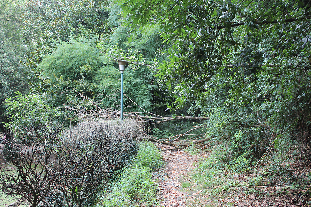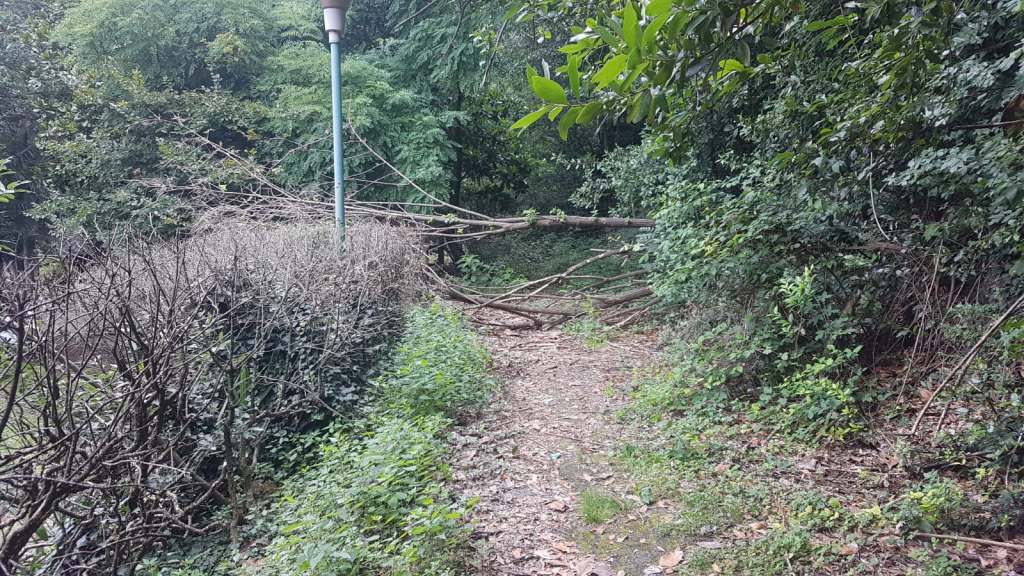 Davanti a Villa Geno, dove a dare il benvenuto c’è un albero caduto da mesi e dove un sentiero si inerpica fino a raggiungere via Torno, se avete il coraggio di percorrerlo.