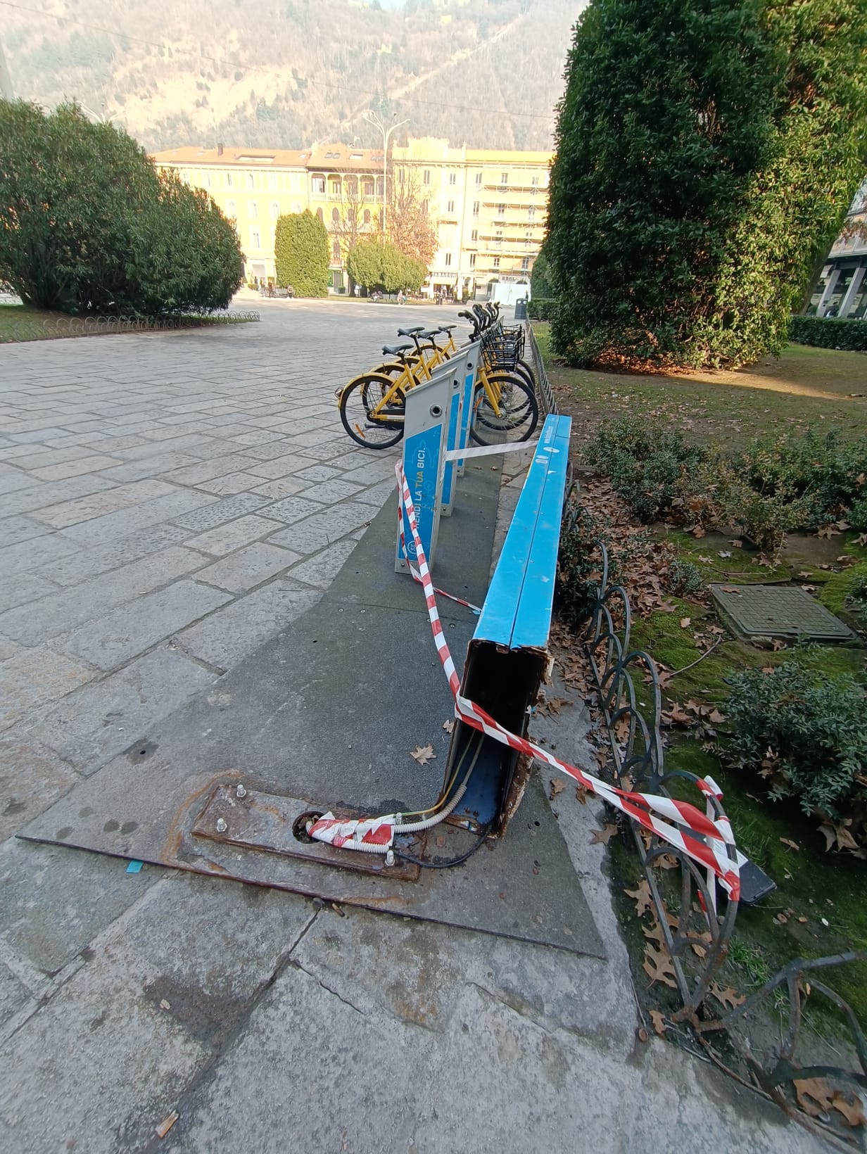 “Ad esempio – scrive Bottone – piazza Cavour è diventata solo una distesa di cemento e basta (se non occupata per qualche evento sporadico). La piazza principale di Como che si affaccia sul lago si presenta al degrado più assoluto tra topi morti, panchine spaccate, fontane non funzionanti e abbandonate, recinzioni rotte, stalli bici distrutti, cabine dell elettricità abbattute e così via”.