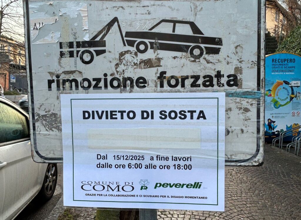 Ma non solo: questa mattina – sebbene in questo momento non ci sia ancora un’ordinanza specifica di Palazzo Cernezzi – l’azienda Peverelli, incaricata dal Comune di tagliare i ciliegi e piantare i peri sta nuovamente posizionando i primi cartelli in via XX Settembre, evidentemente per un prossimo avvio di lavori. La data di avvio degli abbattimenti – con relativo divieto di sosta su strada – è fissata nel 15 dicembre prossimo.