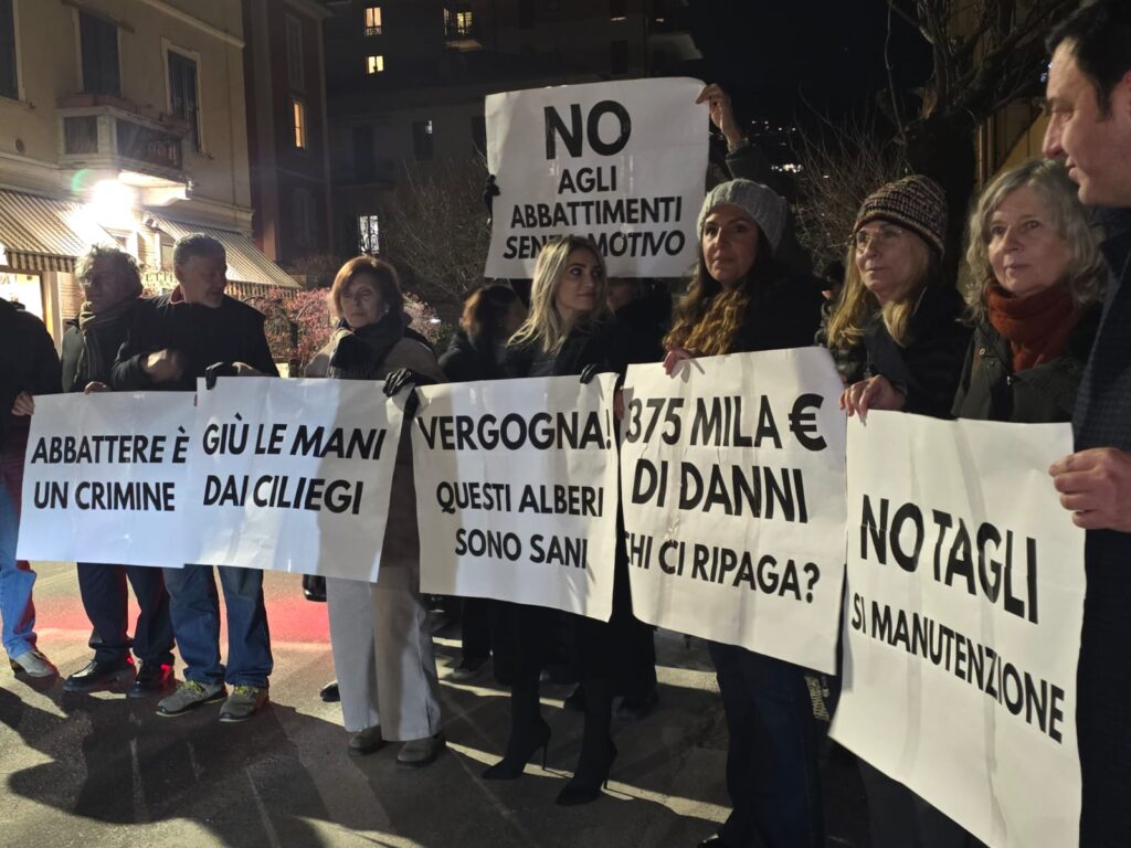 Vigilia tesa a pochissime ore dall’annunciato taglio dei ciliegi di via XX Settembre, operazione fissata dal Comune di Como per le prime ore del mattino di mercoledì 14 gennaio.