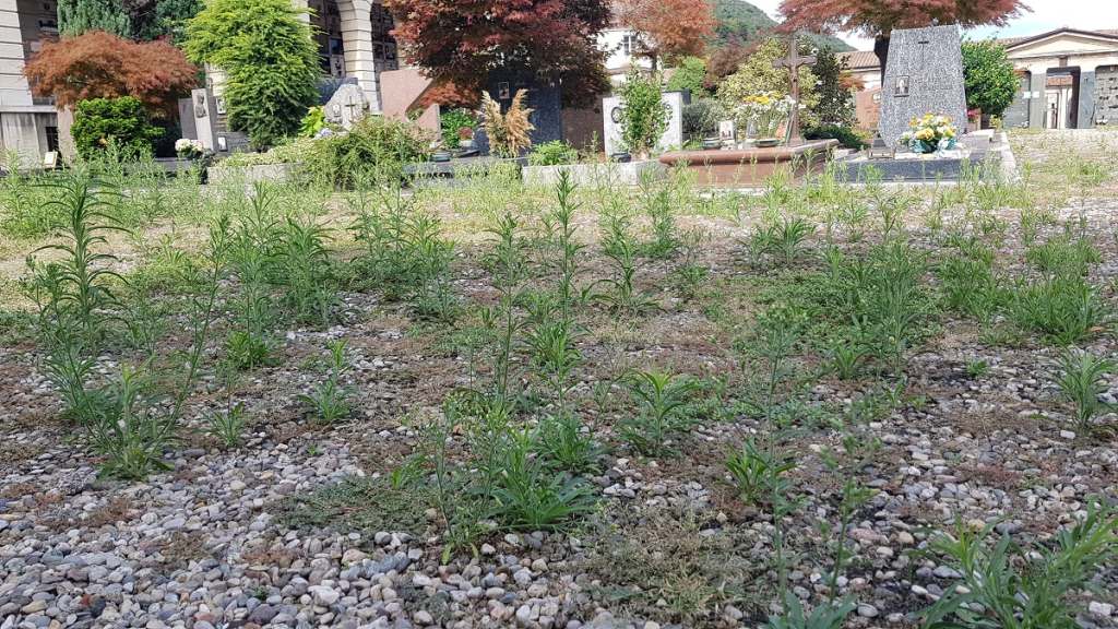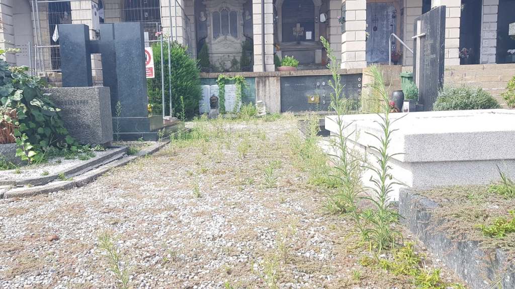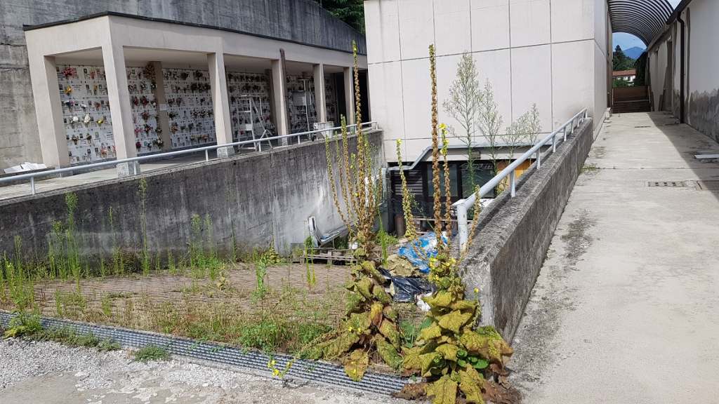 Inutile sprecare troppe parole: le fotografie di questo 14 agosto 2018 parlano da sole. Intere zone del cimitero preda di erbacce alte 20-30 centimetri, manutenzione inesistente, superfici ridotte quasi a verdi campi di calcio (gallery sfogliabile qui sotto).