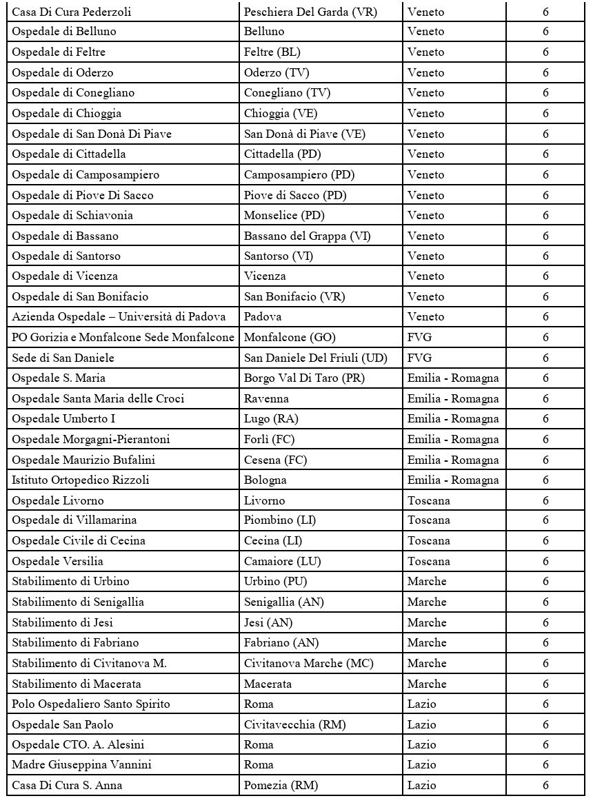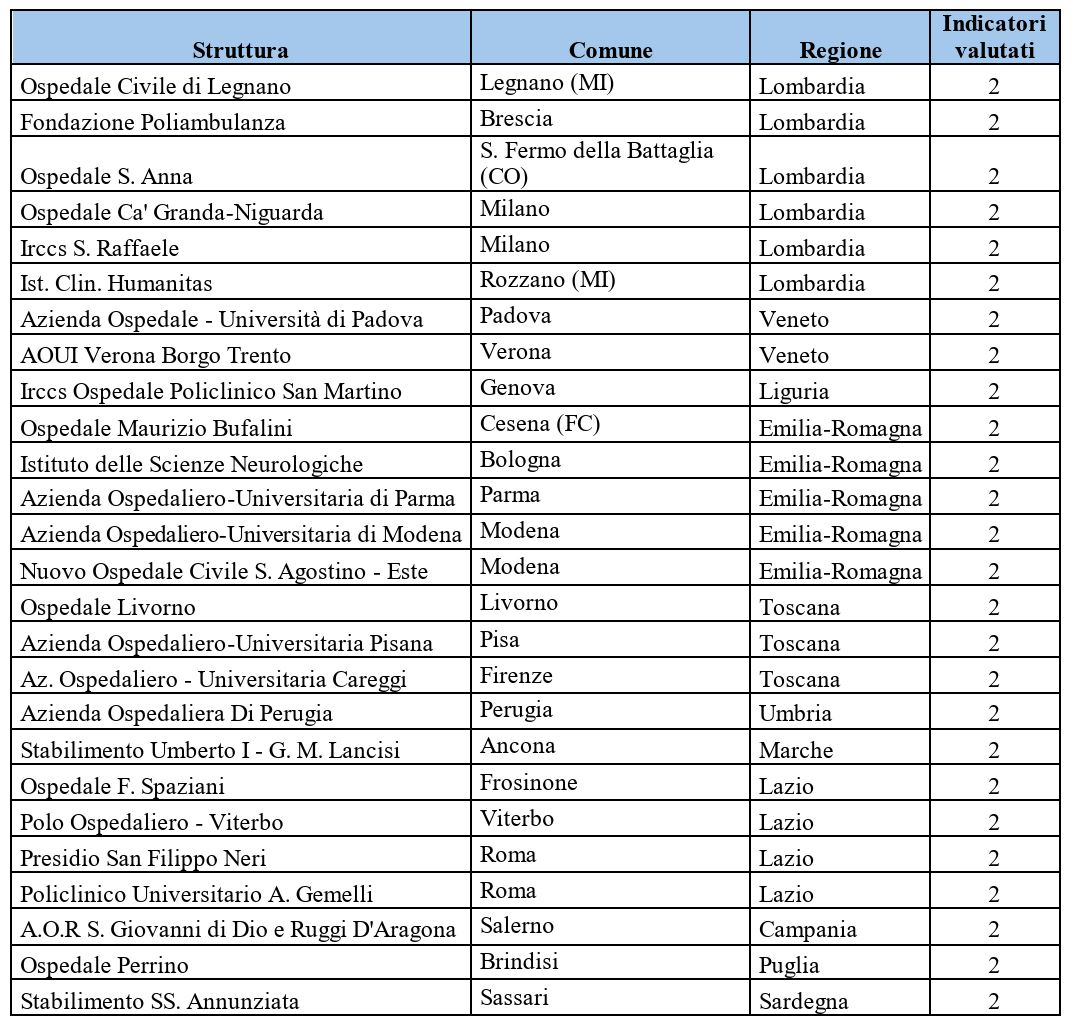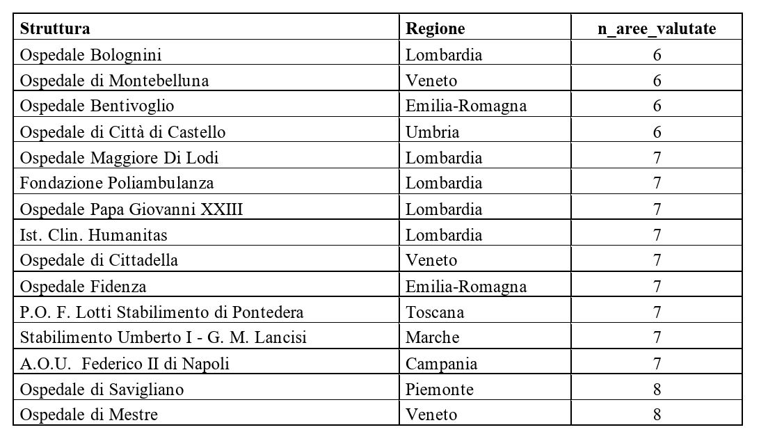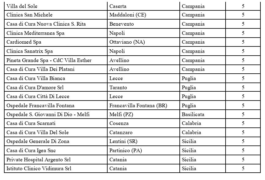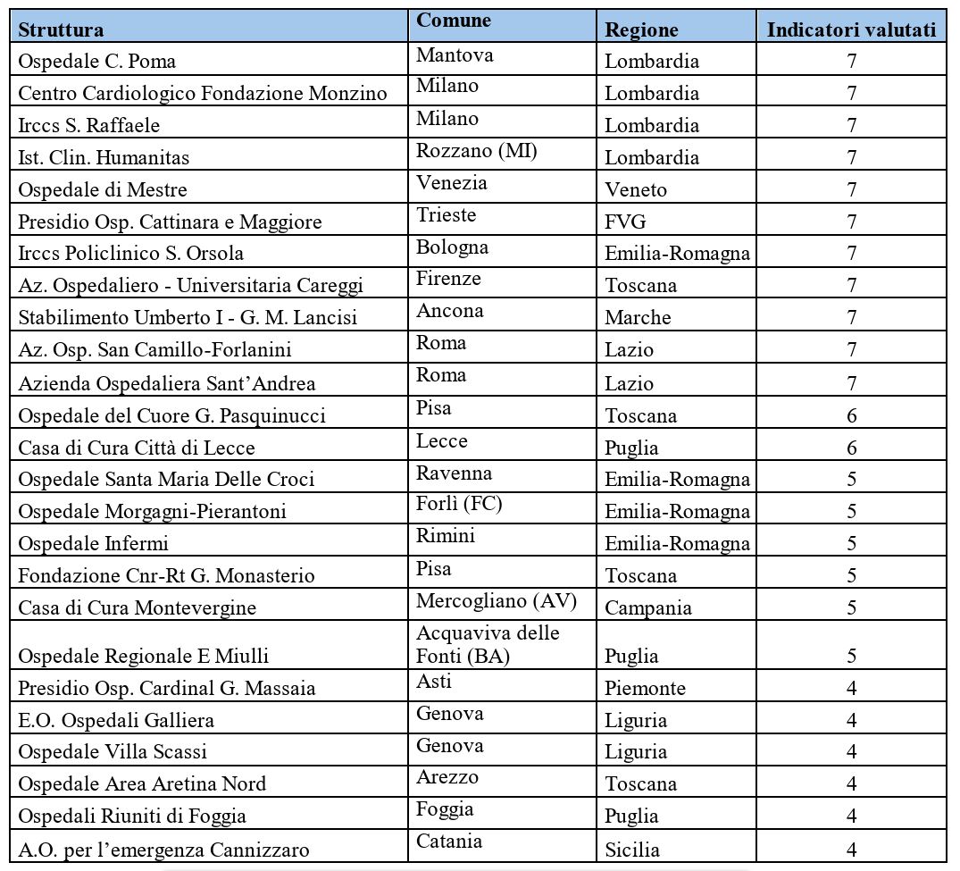 Ecco le strutture con livello “molto alto” in abito cardiocircolatorio: