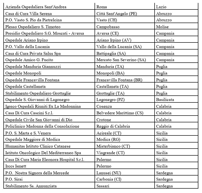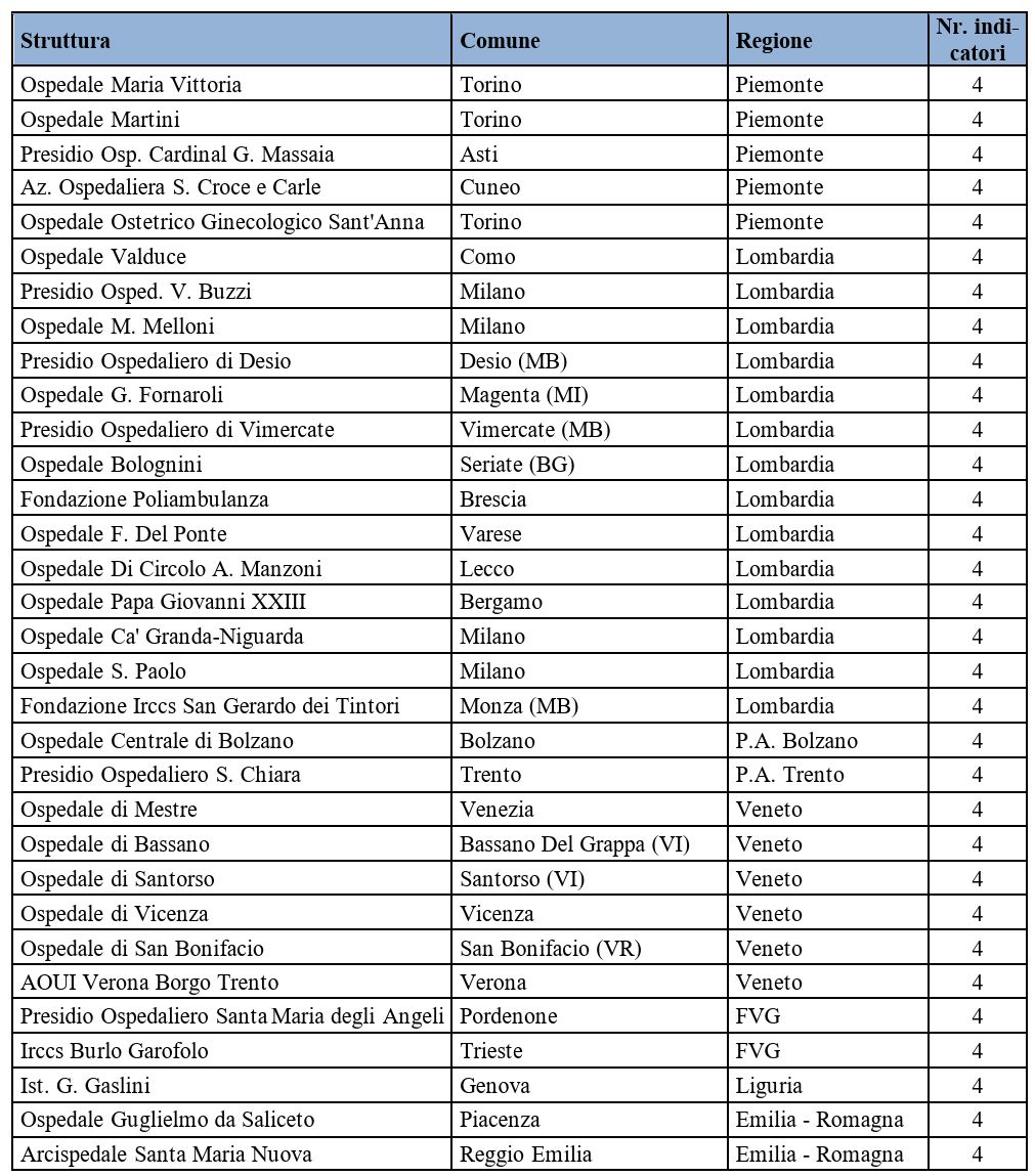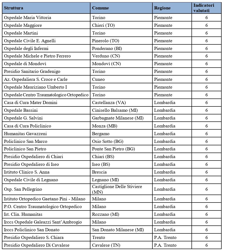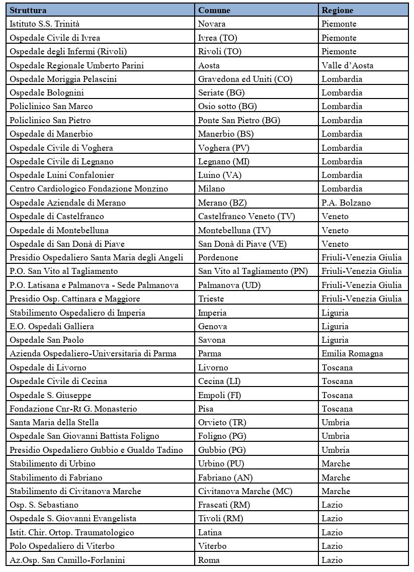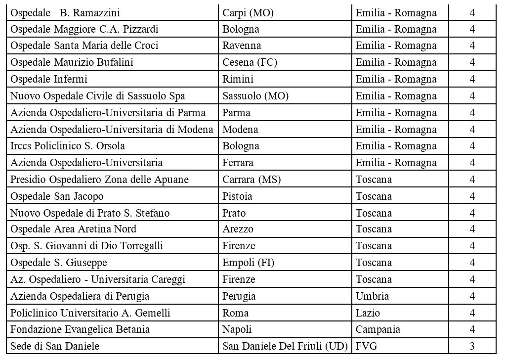 Ecco le strutture con livello “molto alto” in abito cardiocircolatorio: