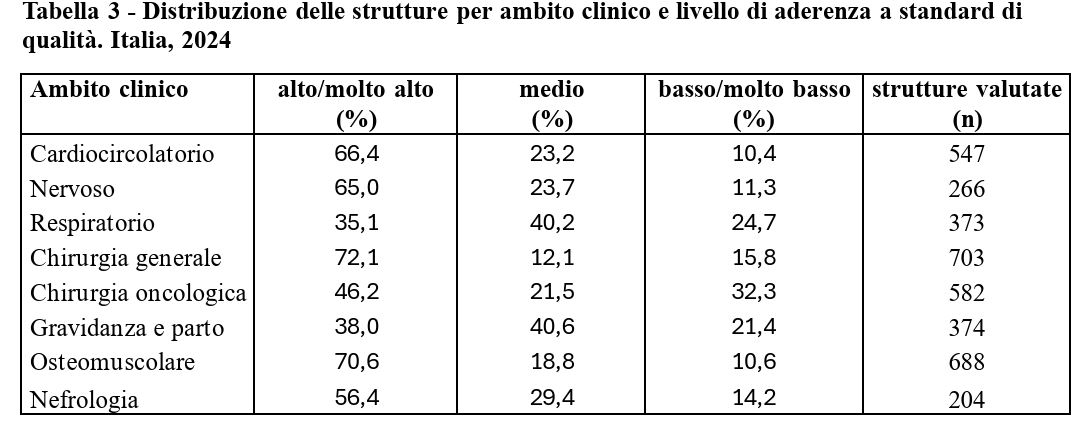 LA valutazione prende in esame otto aree cliniche: cardiocircolatorio, nervoso, respiratorio, chirurgia generale, chirurgia oncologica, gravidanza e parto, osteomuscolare, nefrologia.