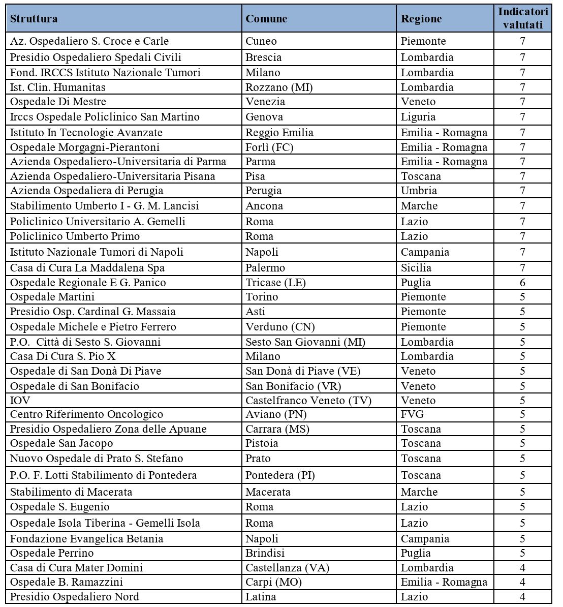 C’è poi l’ambito della chirurgia oncologica con “livello molto alto”:
