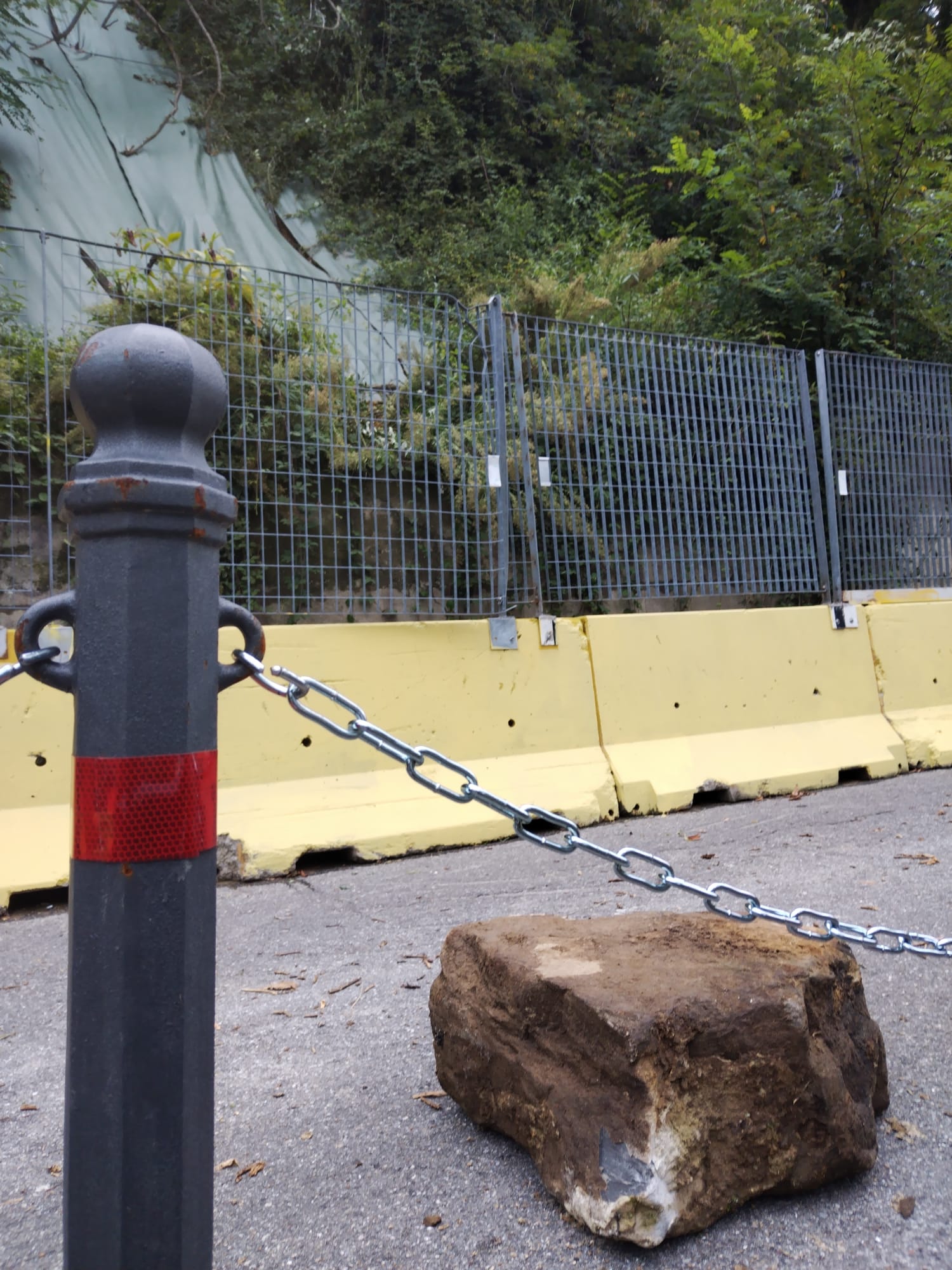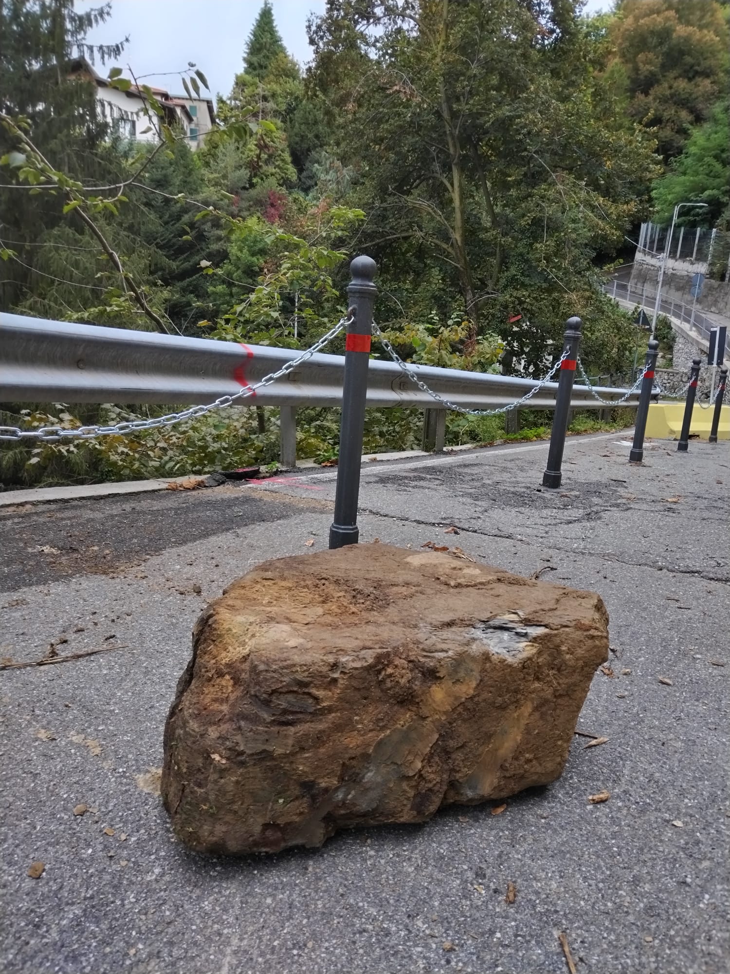 Davvero enorme e pesantissimo il sasso, che fa venire i brividi pensando a cosa sarebbe potuto accadere nel caso di impatto contro un passante o contro un’auto. La griglia metallica installata da Palazzo Cernezzi, che avrebbe dovuto frenare la caduta, è rimasta solo leggermente danneggiata nella parte alta, ma di fatto non è servita a granché altro. Il masso, infatti, ha concluso la sua corsa potenzialmente letale saltandola e precipitando esattamente sull’asfalto sotto il punto franato nel 2024.