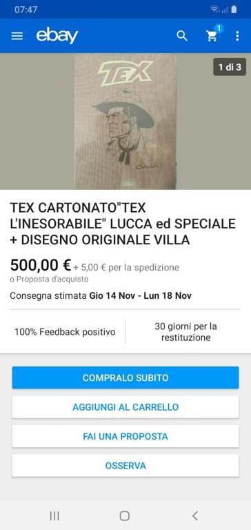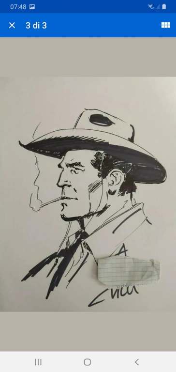 Mah!!!vendere un opera di un disegnatore non è passione per disegno,fumetti….anni fa a Como c’èra stata una mostra di Tex è essendo appassionato di fumetti Tex,Zagor ecc ecc ebbi la fortuna di conoscere Fabio Civitelli presentava un opera di Tex .quel giorno portai qualche mio disegno e mi indico alcuni accorgimenti sul disegno fatto da me e in pochi minuti disegno Tex davanti a me disegno che conservo gelosamente in ricordo di una giornata fantastica.