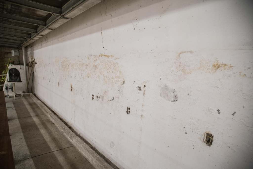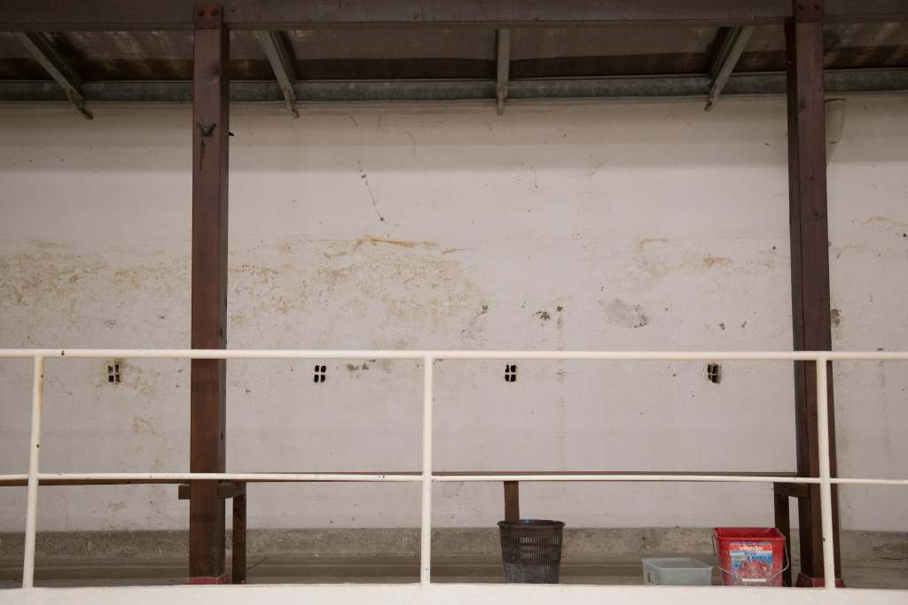 E in effetti la sensazione, superato il giardino in cui tra tavoli di giocatori di carte una casetta dimenticata racconta di quando qui giocavano anche dei bambini, è quella di trovarsi in una serra: tetto e pareti in ondulina semitrasparente, nessuna finestra (“A parte tre pannelli che abbiamo trasformato in finestre scorrevoli”, spiega l’ex-presidente Domenico Piscitiello), buchi nella copertura, infiltrazioni di umidità che arrivano fino ai campi e un’aria soffocante.