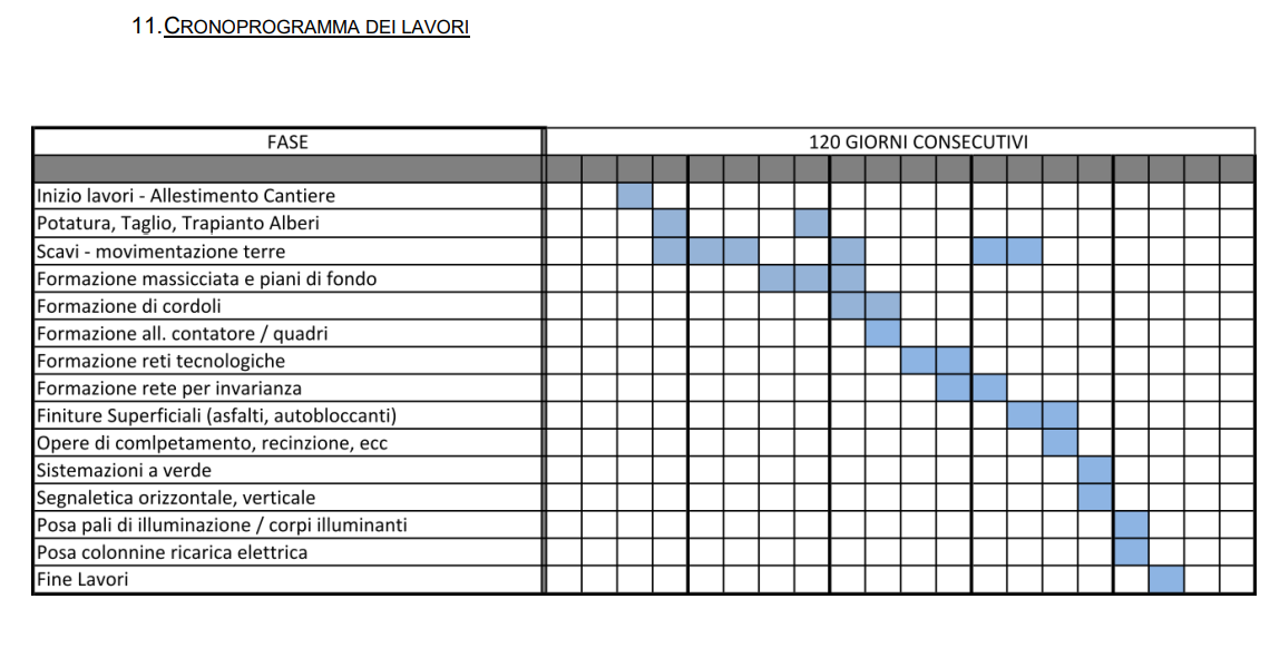 E la durata del cantiere è stimata in 120 giorni consecutivi.