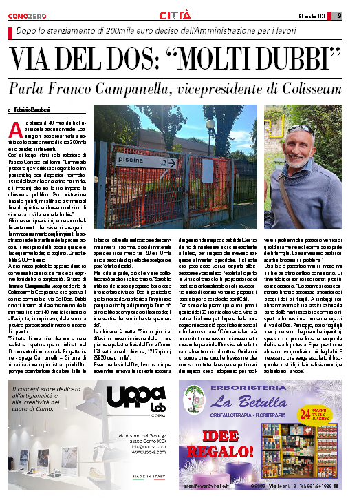 A suo modo potrebbe apparire dunque come una buona notizia ma c’è chi esprime forti dubbi e perplessità. Si tratta di Franco Campanella vicepresidente di Colisseum la Cooperativa che gestiva il centro comunale di via Del Dos. Dubbi dovuti intanto al deterioramento della struttura in questi 40 mesi di chiusura e all’esiguità, in ogni caso, della somma prevista per cercare di rimettere in sesto l’impianto.