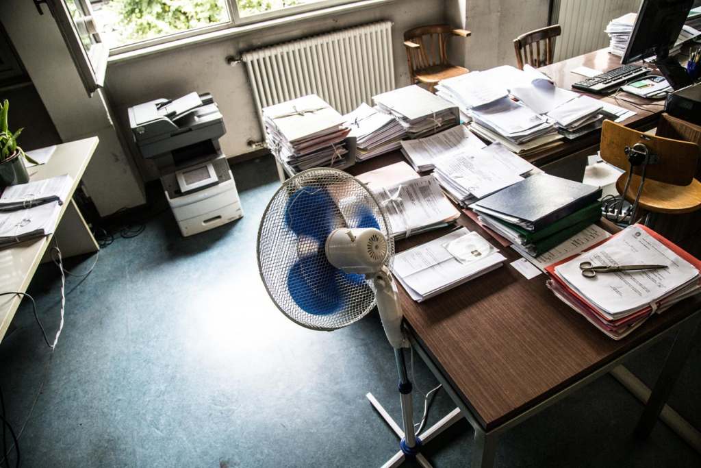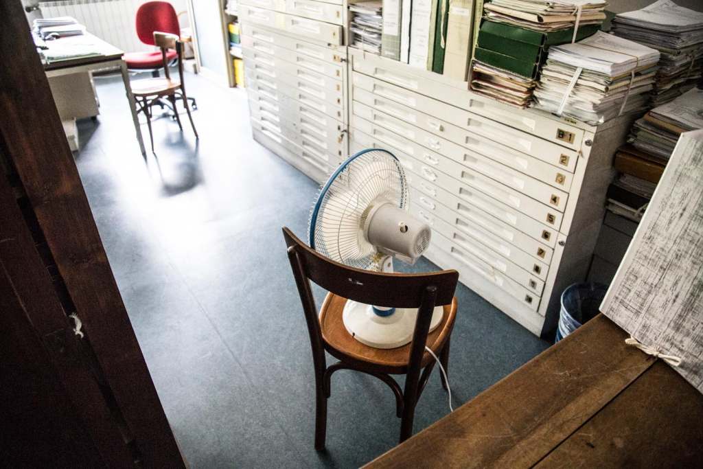 Tutto intorno, ventilatori accessi e tapparelle abbassate per contrastare la calura, con scarsi risultati.