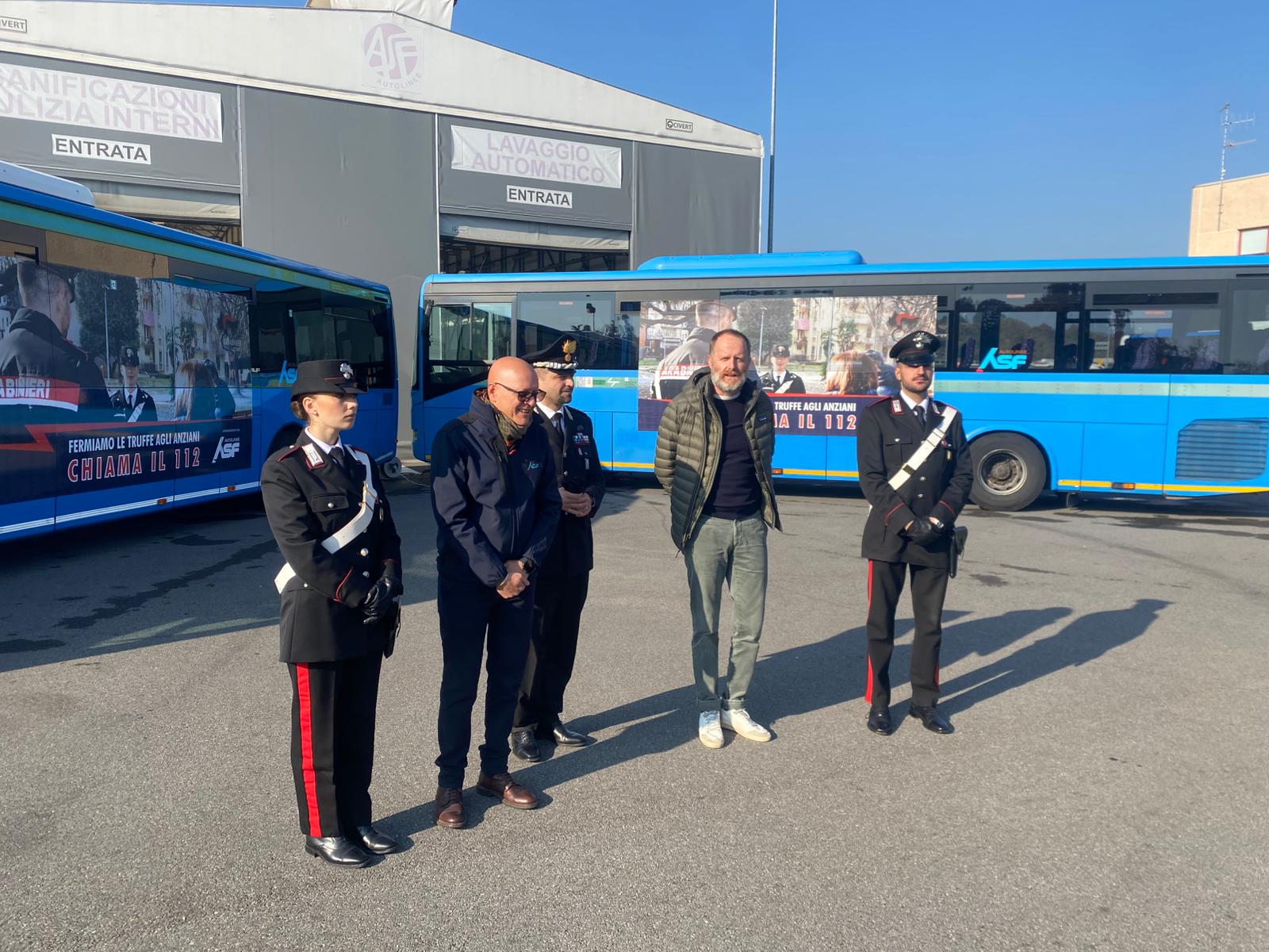 Da oggi, due bus che gireranno sulle linee C146 (Como – Bergamo) e C110 (Como Menaggio – Colico), avranno una decorazione laterale con la scritta: «Fermiamo le truffe agli anziani – Chiama il 112».