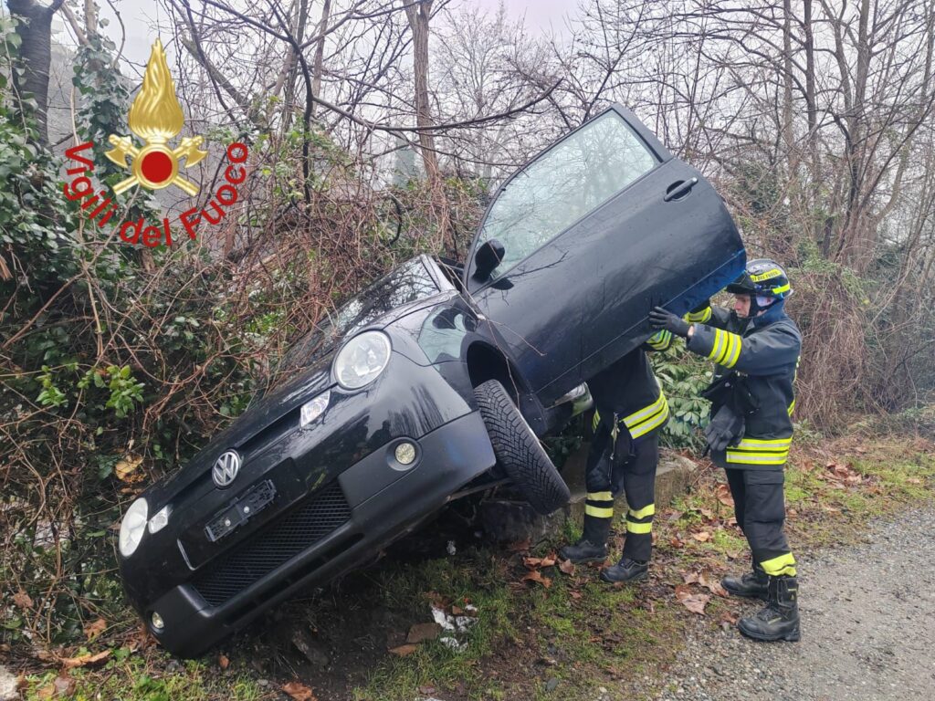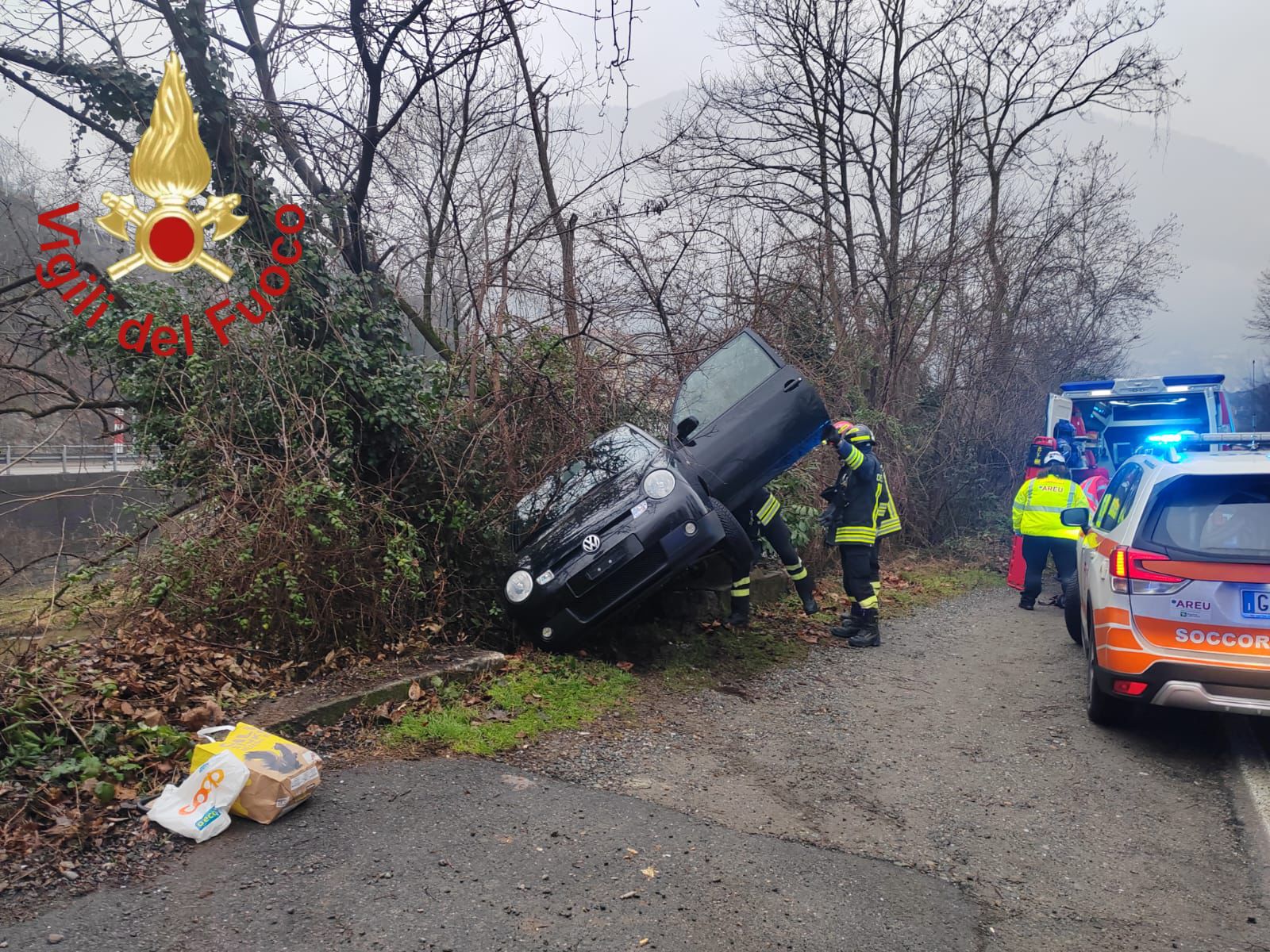 Sono intervenuti i vigili del fuoco, su richiesta del 118, per un’auto finita fuori strada con due occupanti a bordo.