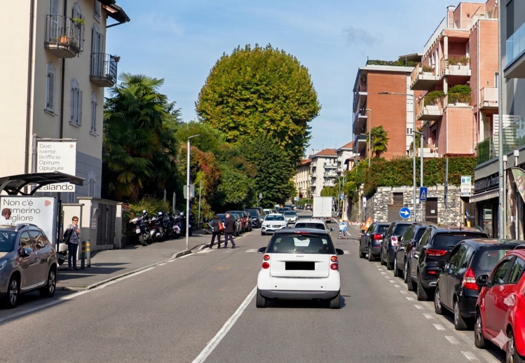 Prima di attraversare, anche in quello davanti al Bar Aprica, bisogna armarsi della pazienza, guardare le macchine e moto che sfrecciano. I conducenti osservano i pedoni sulle strisce come fossero delle strane, curiose apparizioni e non è consigliabile azzardarsi a mettere piede sulla carreggiata se non si è ben sicuri che qualche anima buona decida di lasciar passare quelli che, evidentemente, sono considerati degli scocciatori.