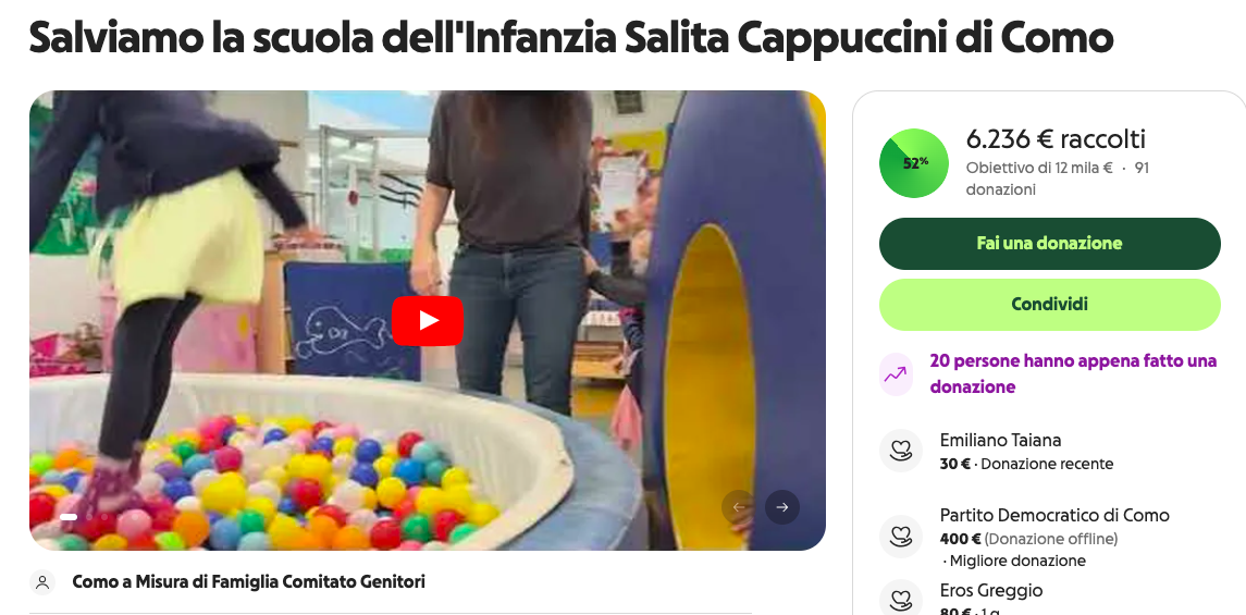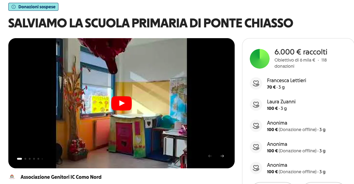 Dopo soli sette giorni dall’apertura della raccolta fondi sulla piattaforma online GoFundMe, anche la primaria “De Calboli” di Ponte Chiasso ha raggiunto l’obiettivo prefissato, 6mila euro, e può depositare l’annunciato ricorso al Tar contro la chiusura voluta dall’amministrazione Rapinese, come avevamo raccontato in anteprima in un articolo pubblicato su ComoZero cartaceo nel quale il presidente del Consiglio d’Istituto, Mirko Grisoni, e la presidente dell’Associazione Genitori Chiara Antonini ci avevano accompagnati in un viaggio affatto scontato alla scoperta dell’importanza di questa piccola scuola in un quartiere così delicato.