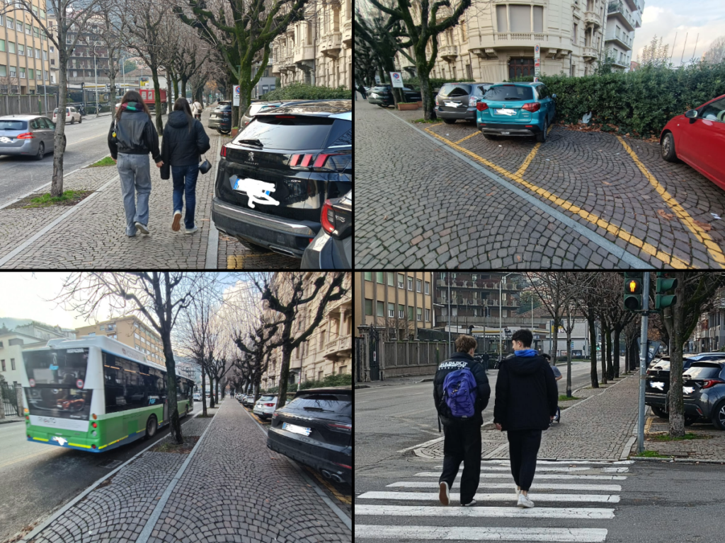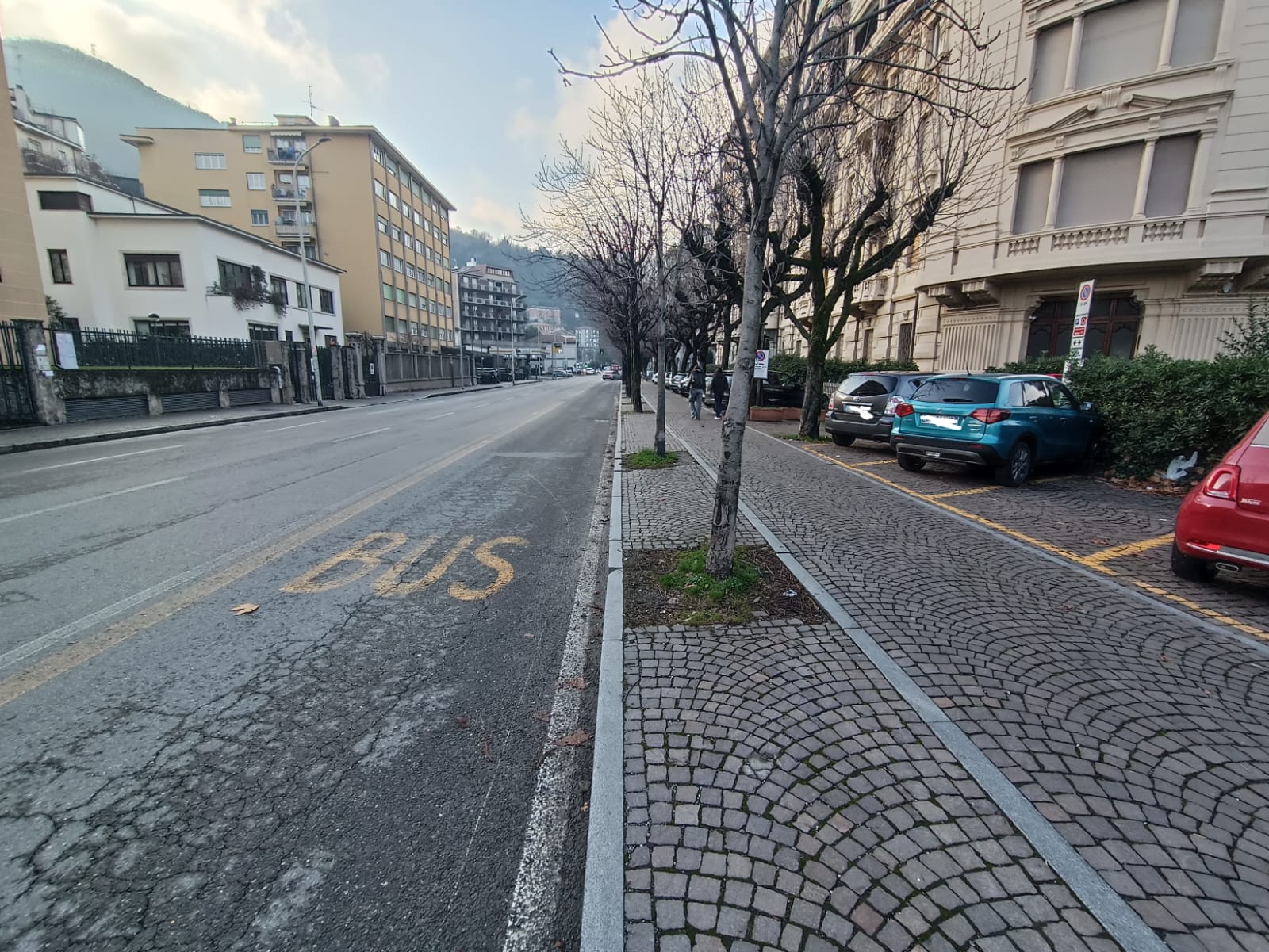 Una follia pura da gennaio, impraticabile camminare sul marciapiede in sicurezza, rischio di essere investiti e possibili incidenti tra auto e bus in viale Rosselli.