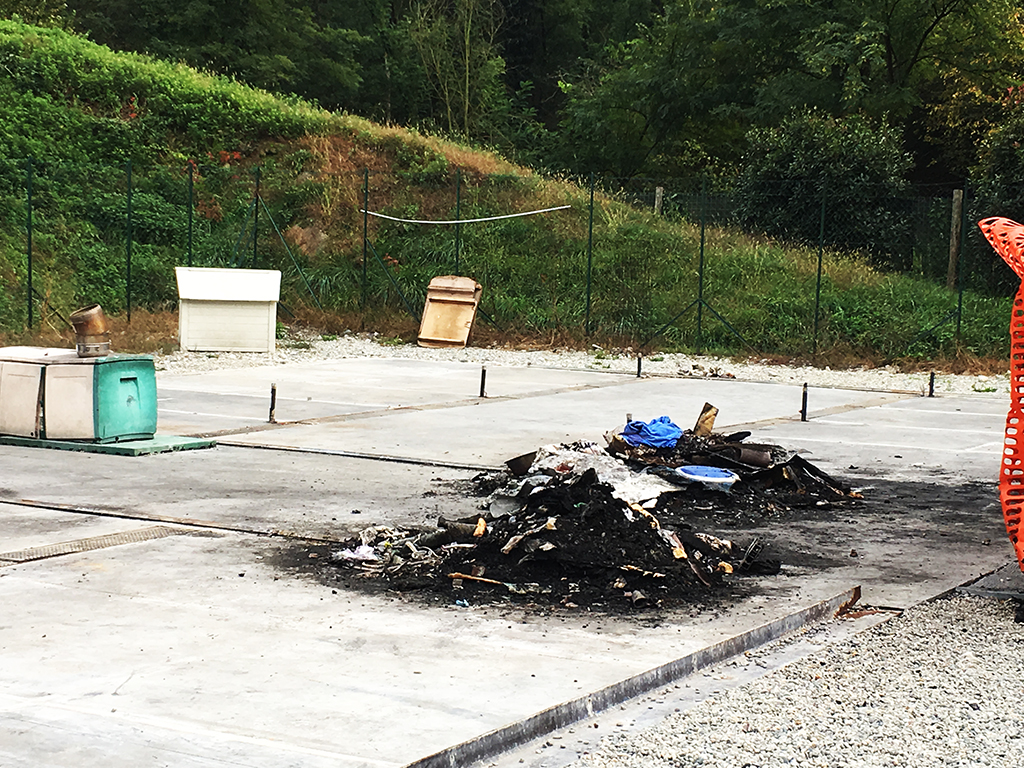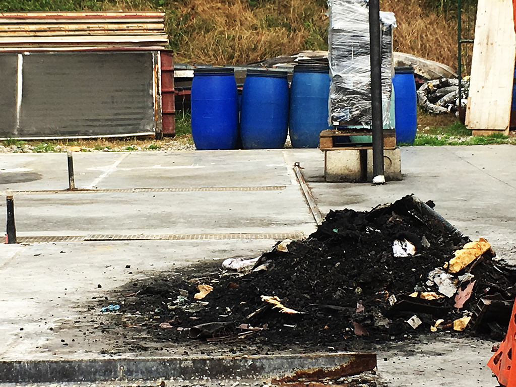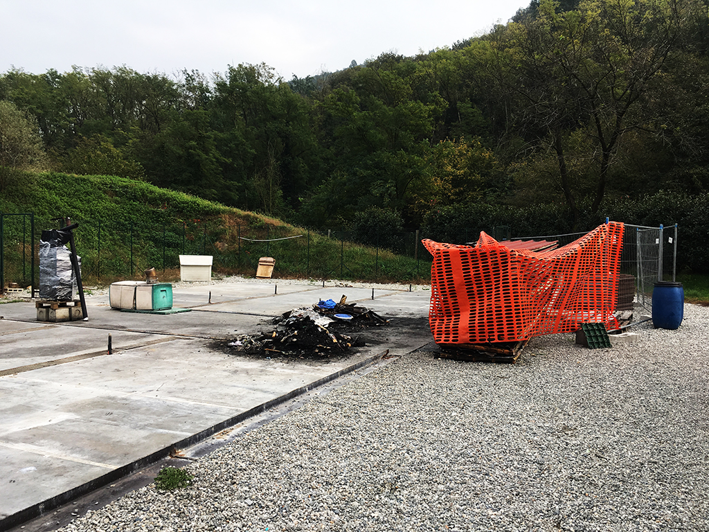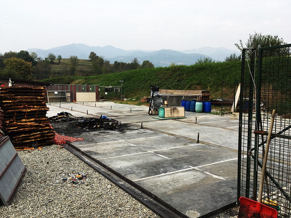 Il capannone bruciato è stato completamente smontato e stiamo ultimando lo smaltimento dei materiali. Siamo riusciti a recuperare solo la piattaforma che verrà piastrellata a breve